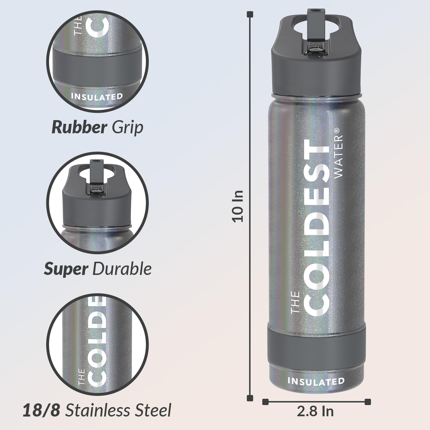 Coldest Insulated Water Bottle with Straw Lid - Stainless Steel Metal Insulated Bottle for Men & Women (Stardust Glitter, 24 oz)