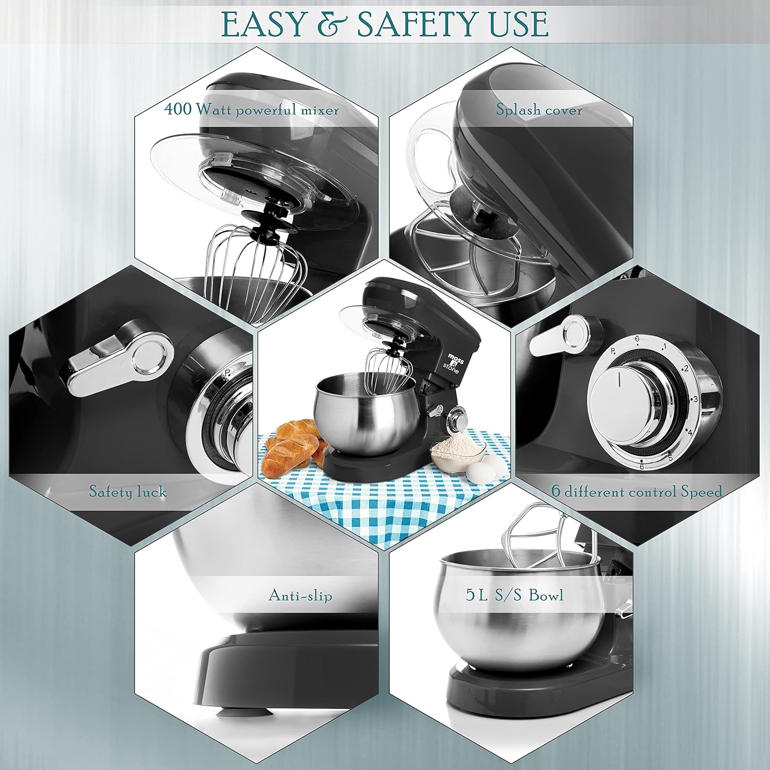 - Customer Support: Moss & Stone household stand mixers & baking sets for kitchen are covered under our 1-year warranty.