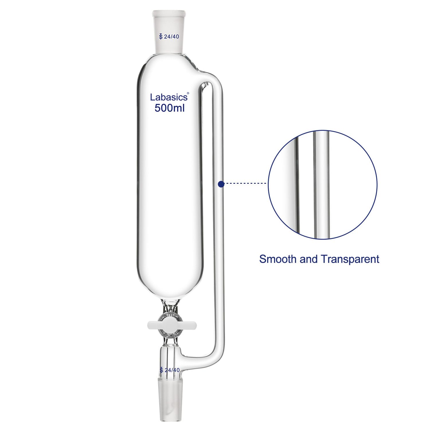 Labasics 500 ml Pressure Equalizing Addition Funnel, Borosilicate Glass Dropping Funnel 24/40 Joint with PTFE Stopcock for Laboratory