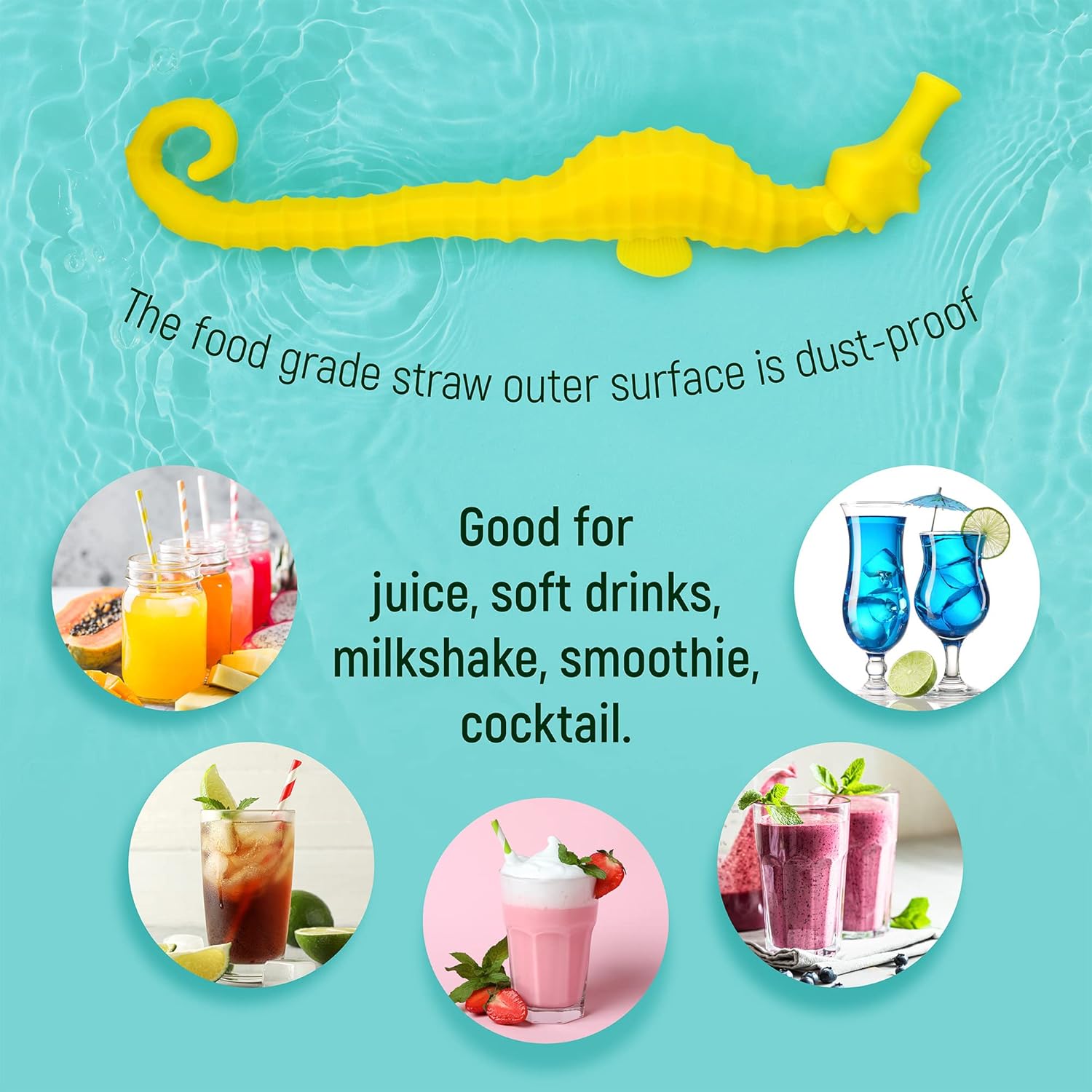 Hoobbe Silicone Reusable Animal Straw for kids, Fun and cute for Pool Side Party, Birthday Party, Under the Sea Party, BPA Free, Dust-Proof and Dishwasher Safe (Seahorse), 1 straw per pack