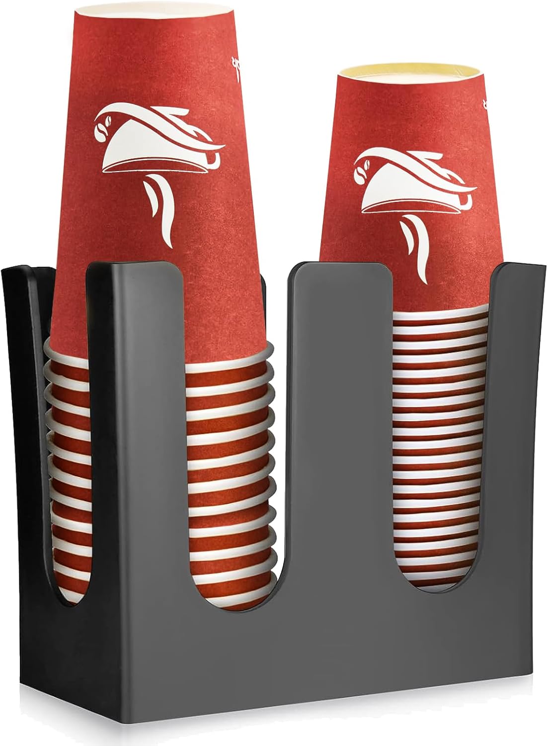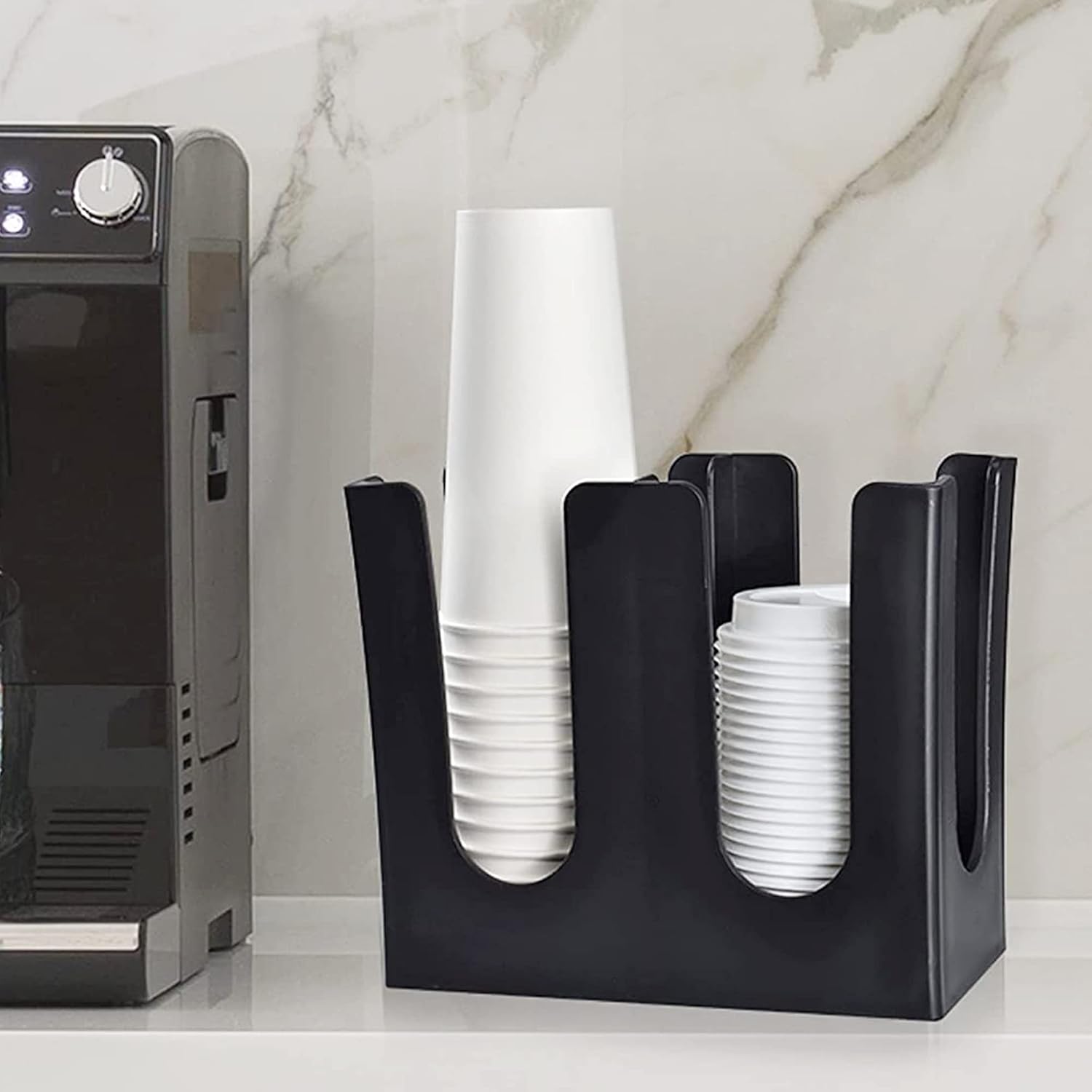 - Ditch The Messy Countertop Chaos: This versatile 2 compartment cup and lid organizer effortlessly accommodates paper and plastic cups from petite 5-ounce delights to generous 16-ounce giants. Whether you're a solo coffee connoisseur or hosting a thirsty crowd, this organizer has your cup runneth over with convenience.