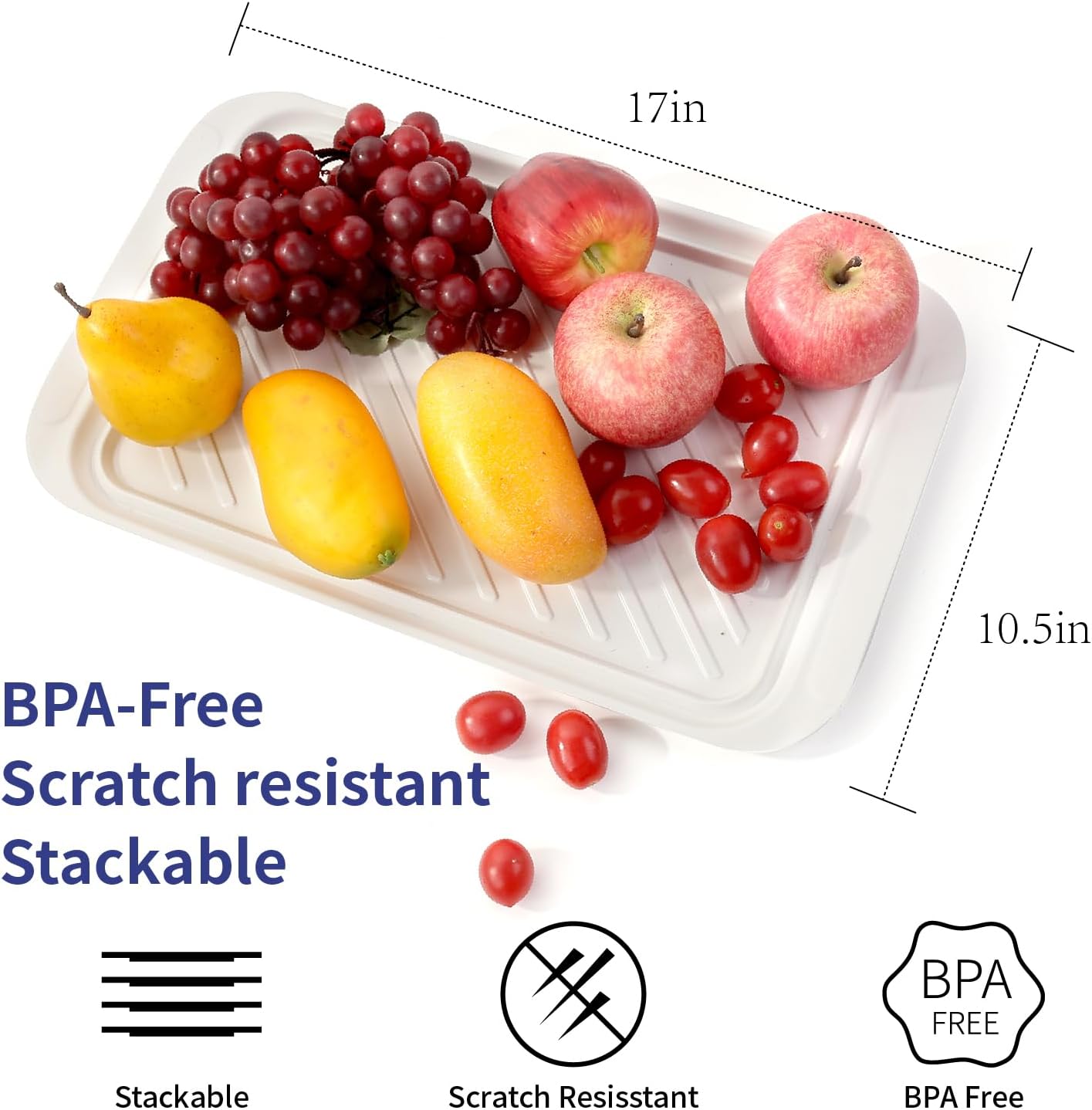- Spacious BBQ Companion: Measuring 17" x 10.5", these large serving trays feature an embossed, non-slip texture and raised edges to contain juices, perfect for carrying meats, sides, or charcuterie.