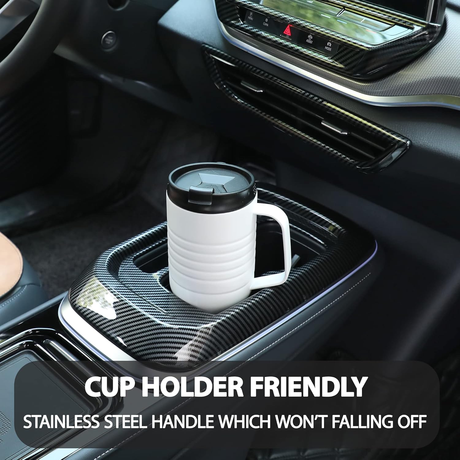 - UPGRADED STAINLESS STEEL HANDLE: The handle is upgraded to stainless steel, which will not come off; The handle design is ergonomic, large or small hands are comfortable to hold the coffee travel mug; Anti-scalding handle, more reassurance to use; In the cold winter, it can bring you steaming warmth, and in the hot summer, it can also get you a refreshing and cold feeling