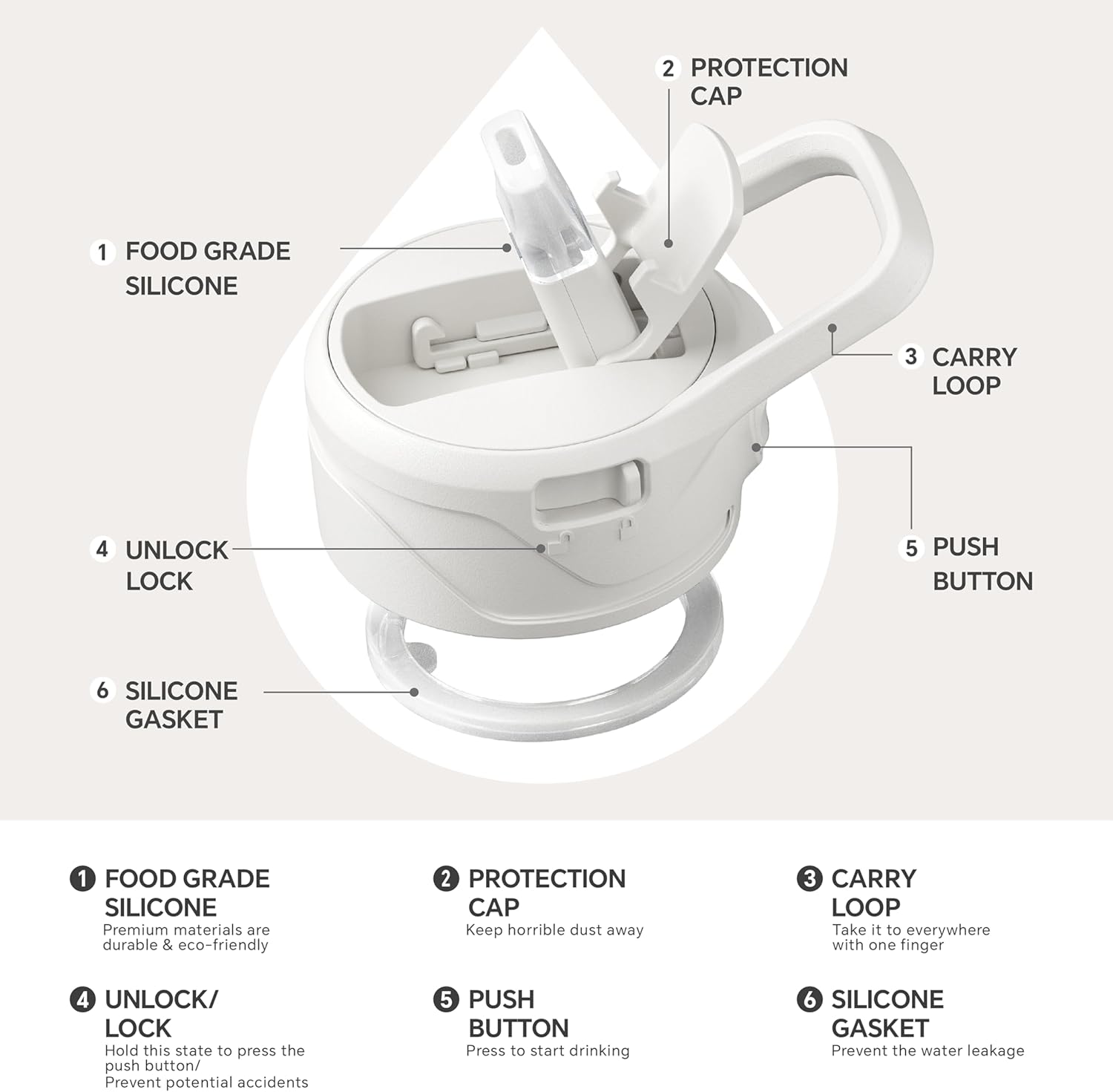 IDEUS Insulated Stainless Steel Water Bottle with 2 Leak-Proof Lids, Thermal Water Flask for Hiking Biking, 40oz, White