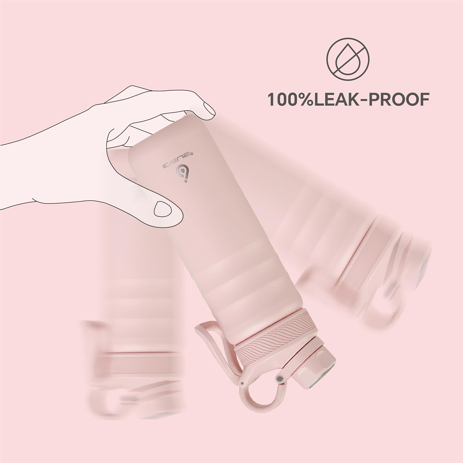 IDEUS Insulated Stainless Steel Water Bottle with 2 Leak-Proof Lids, Thermal Water Flask for Hiking Biking, 24oz, Light Pink