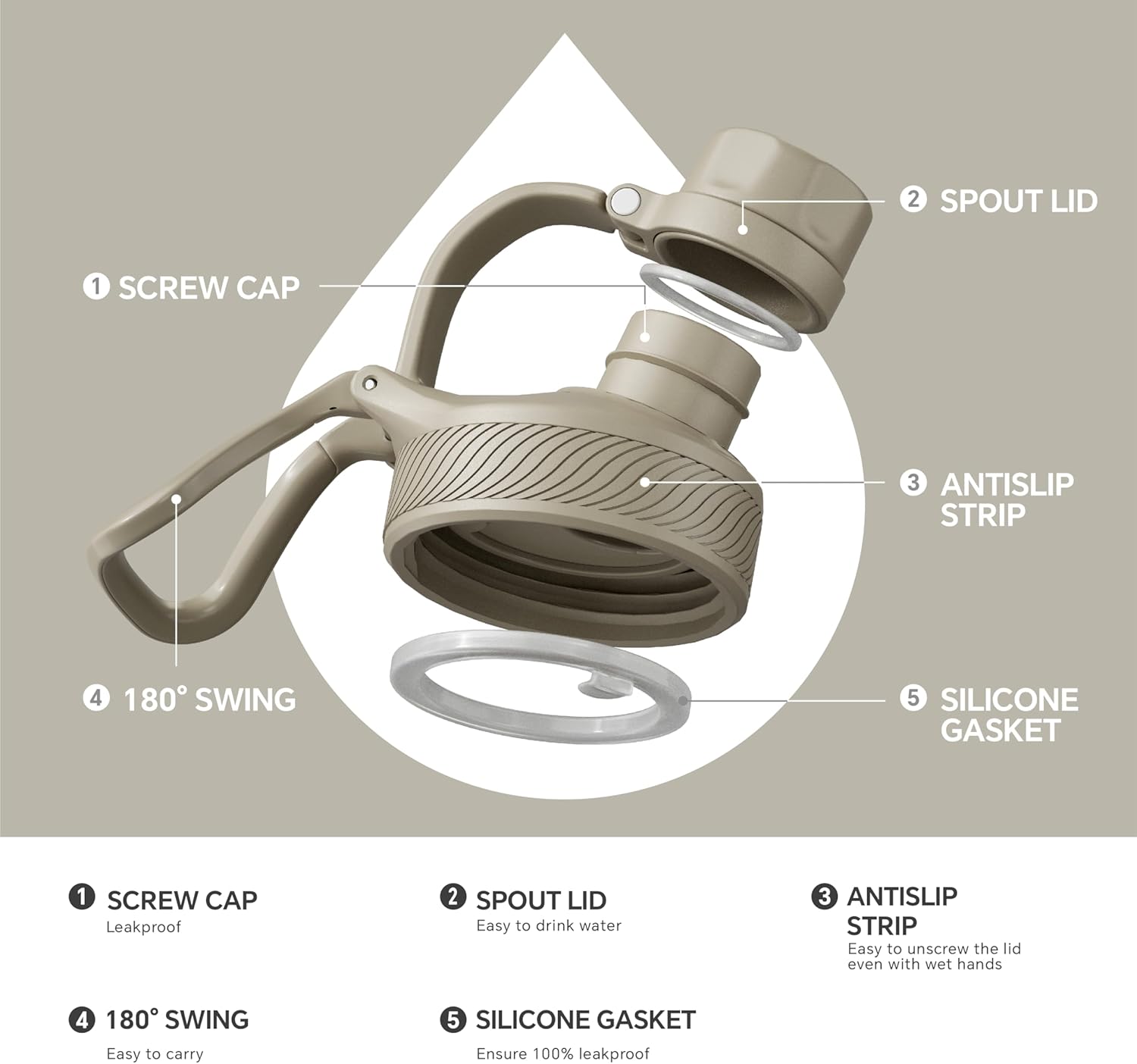 - LEAKPROOF -This design is for those who are constantly on the go in today's busy world. This insulated water bottle comes with an innovative, leakproof, sport lid that allows for easy one-handed drinking or pouring. Put the sports bottle in your bag freely without worrying about wetting other items.
