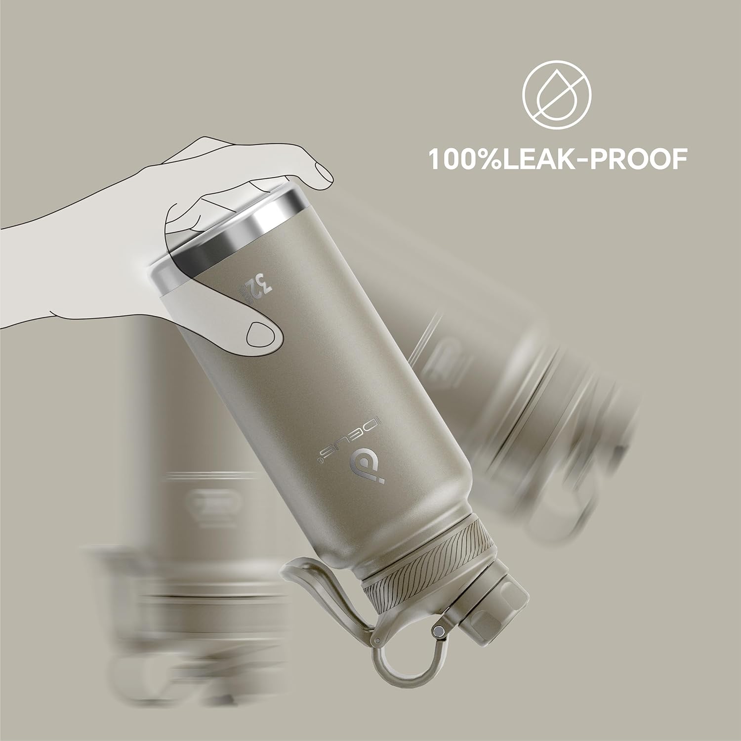- VACUUM INSULATED WATER BOTTLE -IDEUS sports water bottle is made of high-performance food-grade stainless steel which helps the refillable water bottles to retain the cold or heat. Effective insulation with a sports lid & handle lid helps to maintain the temperature up to 24 hours for cold and 8 hours for hot beverages. This reusable water bottle is safe and easy to clean.