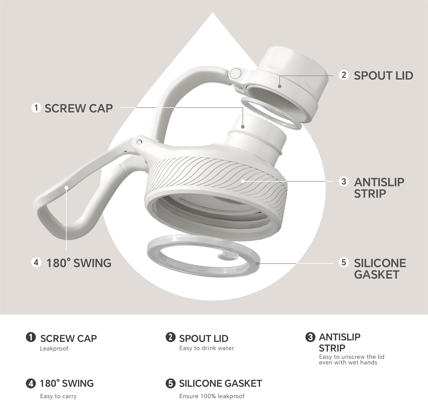 - LEAKPROOF -This design is for those who are constantly on the go in today's busy world. This insulated water bottle comes with an innovative, leakproof, sport lid that allows for easy one-handed drinking or pouring. Put the sports bottle in your bag freely without worrying about wetting other items.