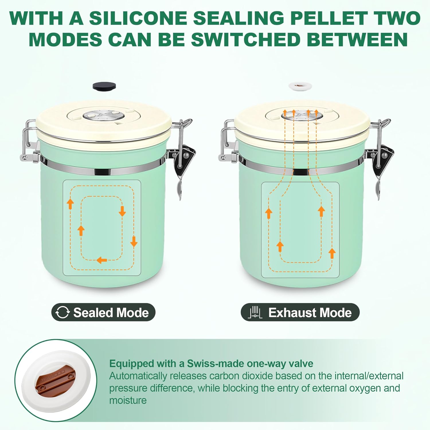 - 【TWO EXHAUST MODES】The canister features a CO₂ valve system and a silicone seal to lock in freshness and keep out moisture and air. A silicone gasket around the edge of the lid ensures an airtight seal when the lid is closed. Storing your coffee beans in this well-designed canister helps extend their freshness and ensures that every cup, even weeks later, tastes as good as the first.
