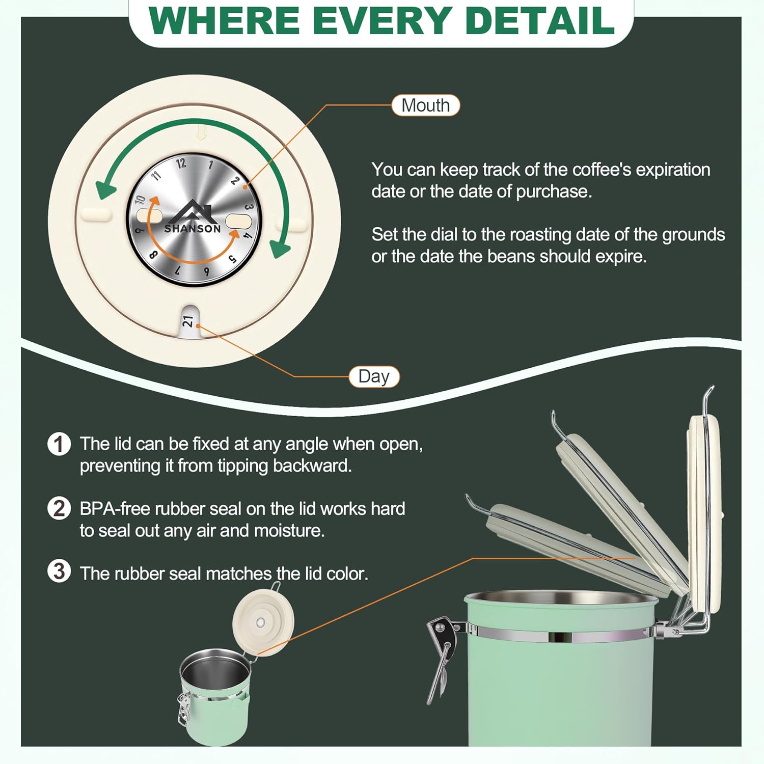 - 【BUILT-IN DATE TRACKER】A simple yet incredibly useful feature! The date tracker lets you monitor when the canister was last filled, helping prevent your coffee from going stale unnoticed. A stainless steel scoop is conveniently attached to the side, so you’re never left searching for a measuring spoon. Features a superior airtight seal for maximum freshness.