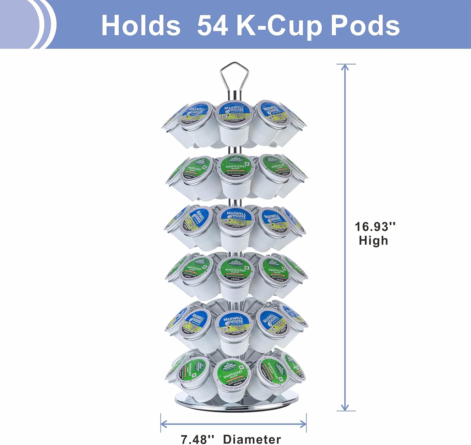 - 【Perfect for organization】The whole K cup carousel is made of metal and covered,with chrome finish.With 360 degree rotation feature, you could get K pod which in each angle.