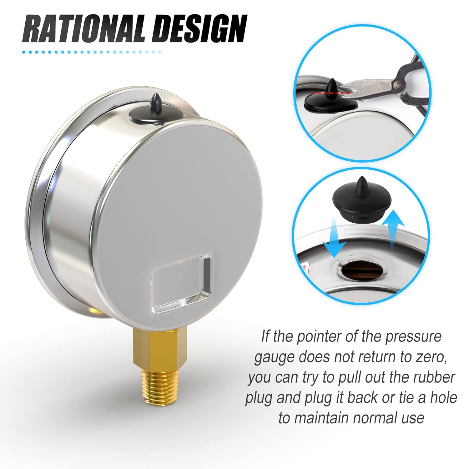 - 【Size】1/8" NPT;2.5" DIAL FACE