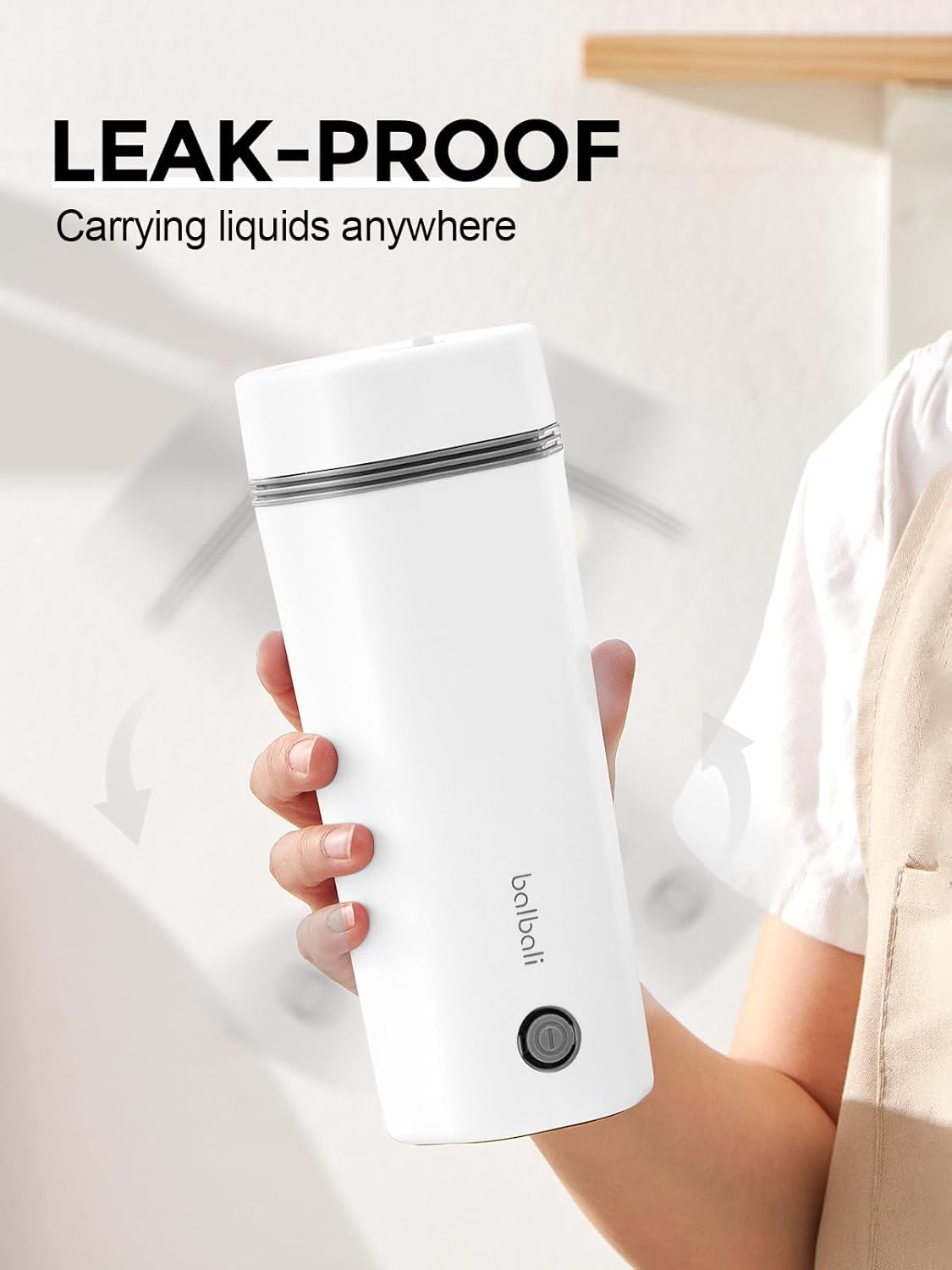 - Leak-proof: The balbali travel kettle has a strong seal, so it won’t leak, even when turned upside down; It makes carrying liquids in your bag so easy
