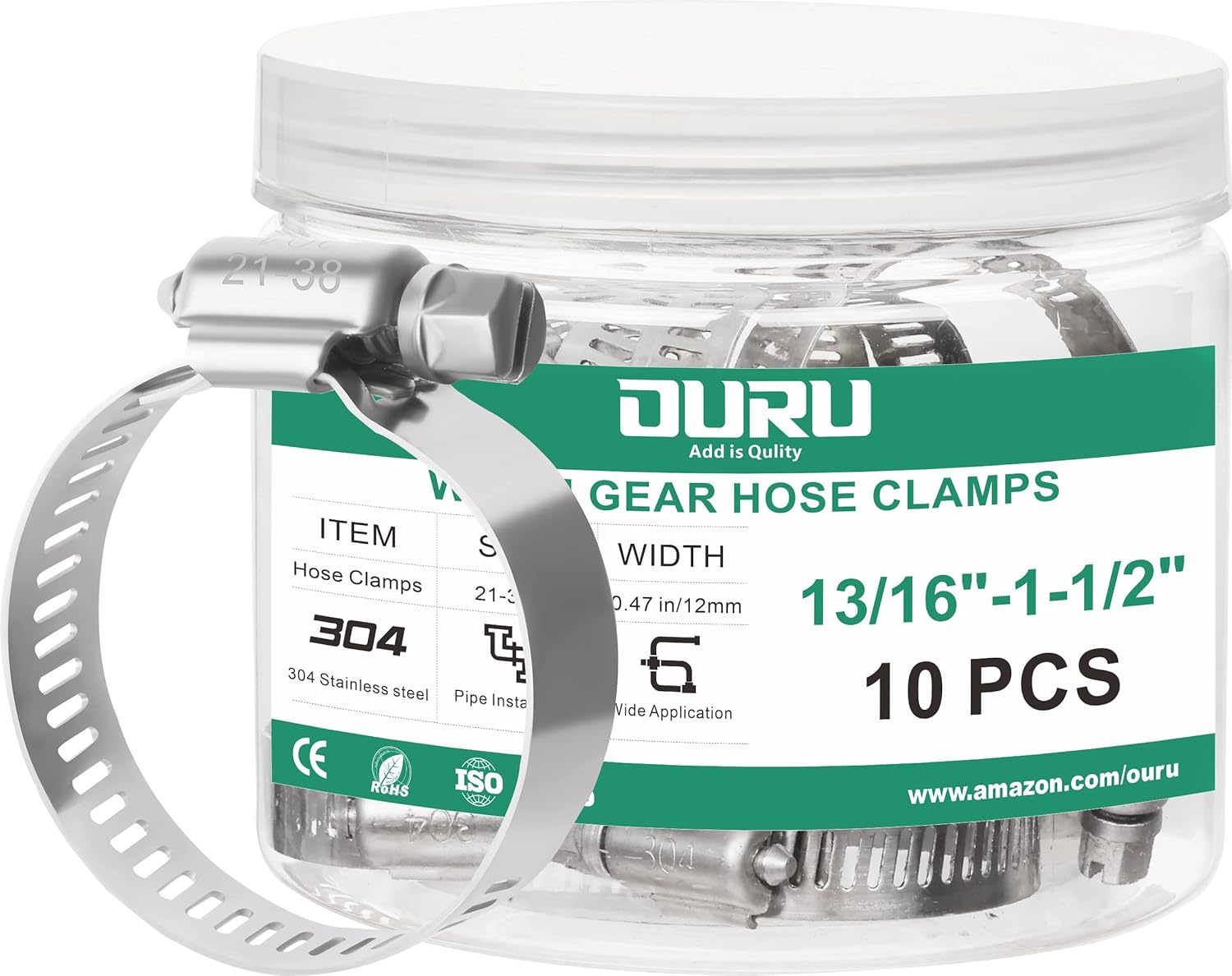 - Reliable OURU Hose Clamps —With unique through-hole design,smooth surface without burr,strong locking force and twisting force,as long as the clamp to the applicable size can be fixed.Strong sealing - effectively solve the problem of hose gas or liquid leakage,don't worry about falling off,easy to install and remove at any time