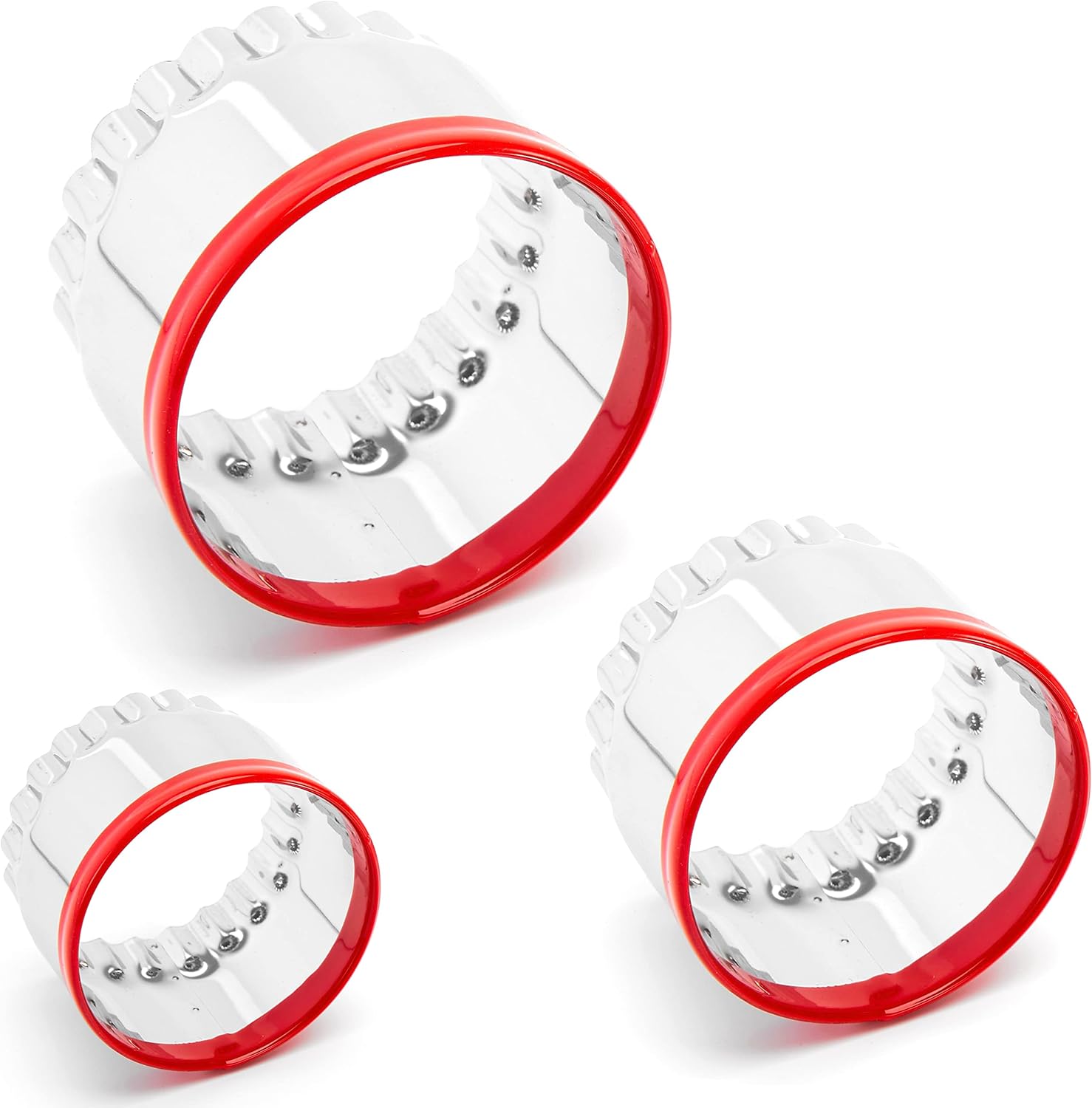 - Red Top Circle Cookie Cutters: The top edge of the cookie cutters is wrapped in food-grade PVC material, making it easy to tell the front and back of the cookie cutters, while protecting your fingers as you use them.