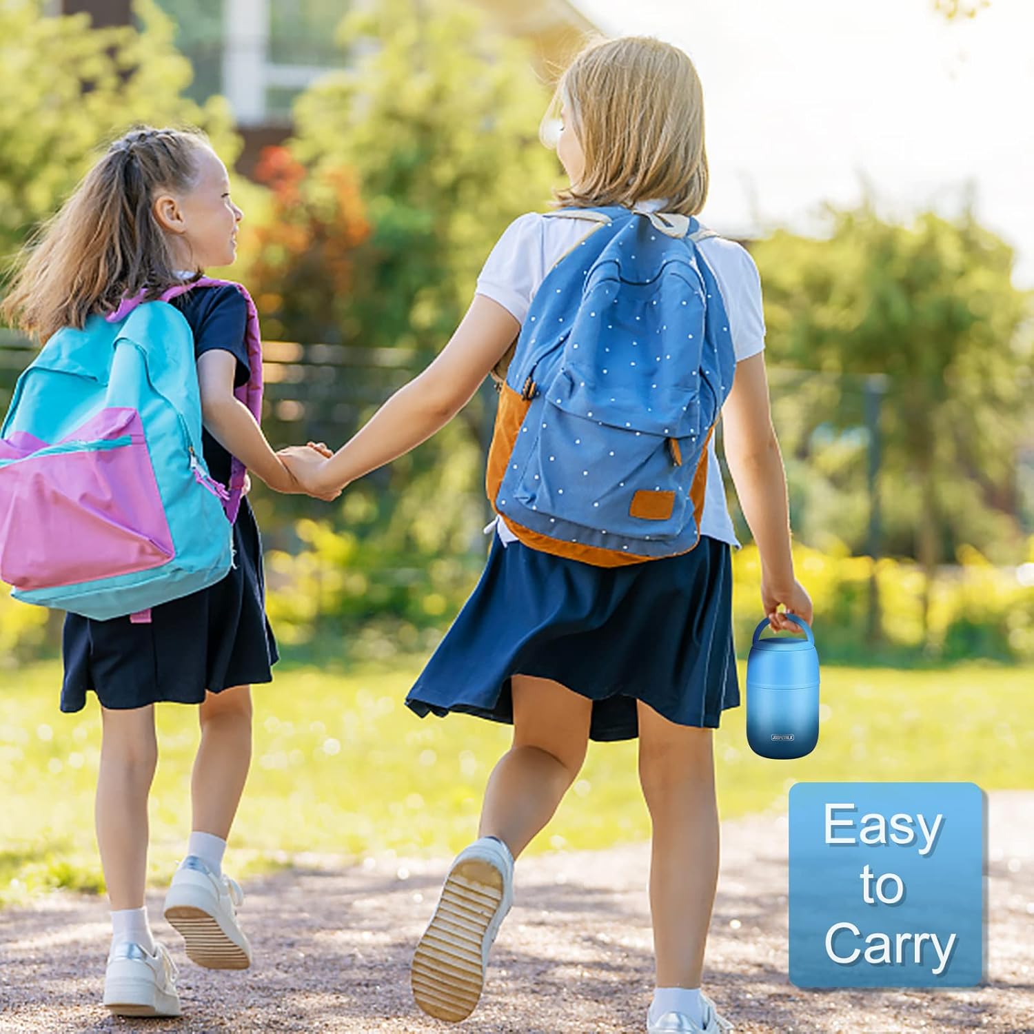 - Our insulated food jar has a unique hidden handle that can reduce the volume of the jar and save more space for you. It fits perfectly in school bags and boxes. The hidden handle could also avoid accidentally opening the lid while carrying school bags.