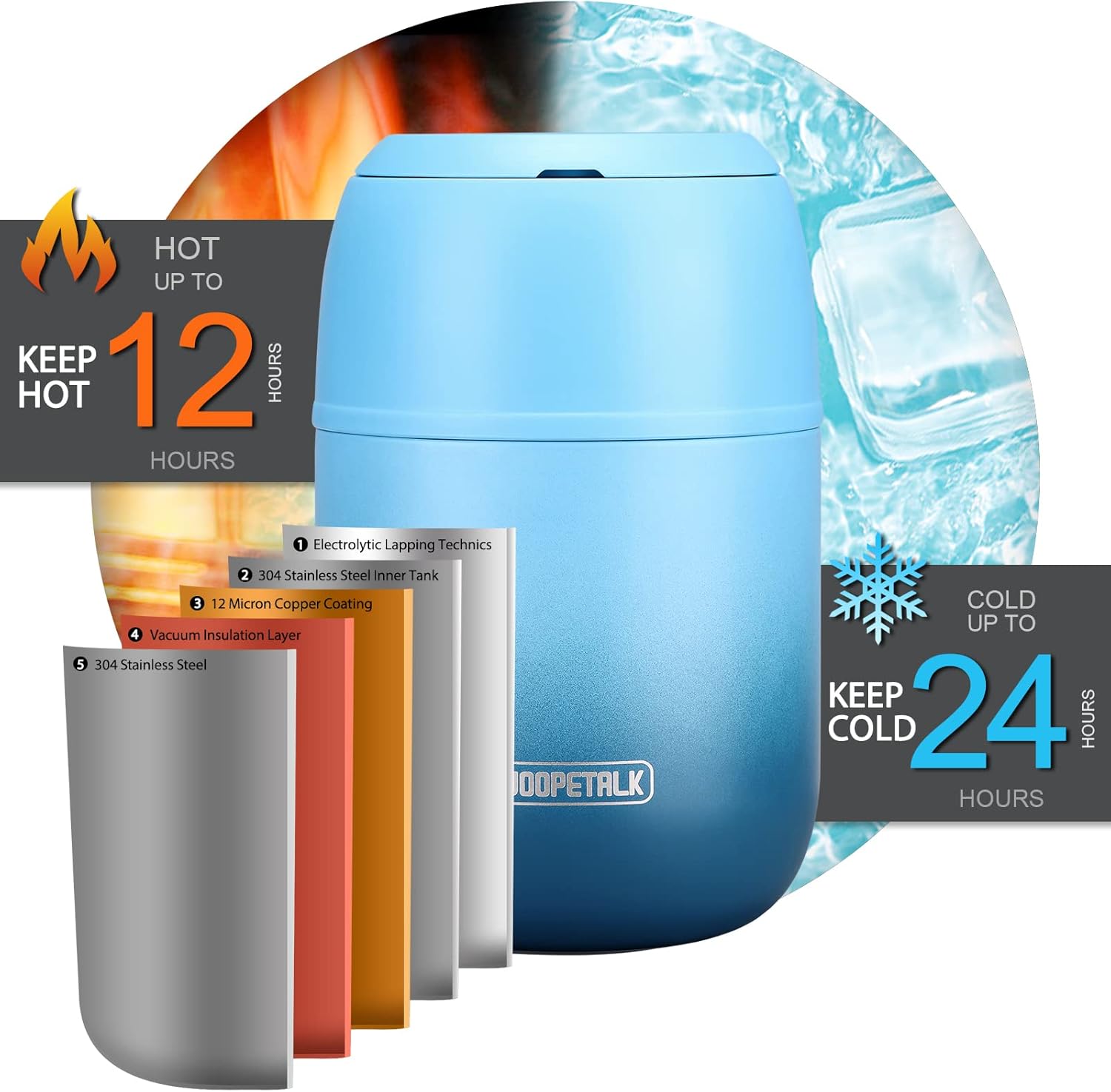 - Joopetalk soup thermo comes with double-wall vacuum insulation technology, that can keep food hot for 12 hours & keep food cold for 24 hours.