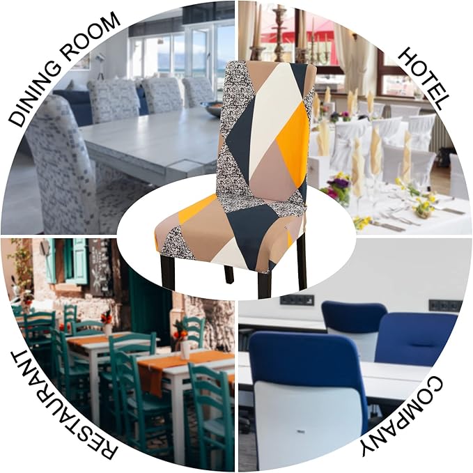 JQinHome Chair Covers for Dining Room 6 Pack,Magic Cube High Stretch Removable Washable Parsons Chair Slipcover for Home Party Hotel Wedding Ceremony (Geometric Patterns)