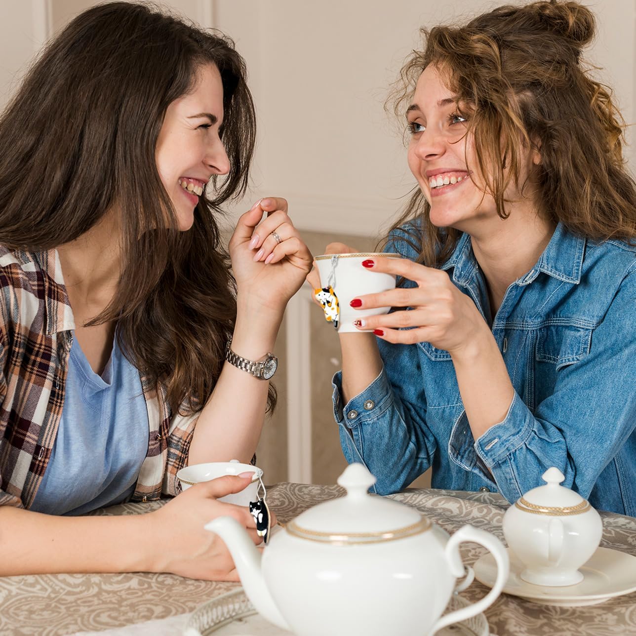 Cat Tea Infuser, 2 Pcs Cute Tea Diffuser Stainless Steel Mesh Loose Leaf Tea Infusers Tea Ball Strainers with Cat Pendants (Black&Orange Cats)