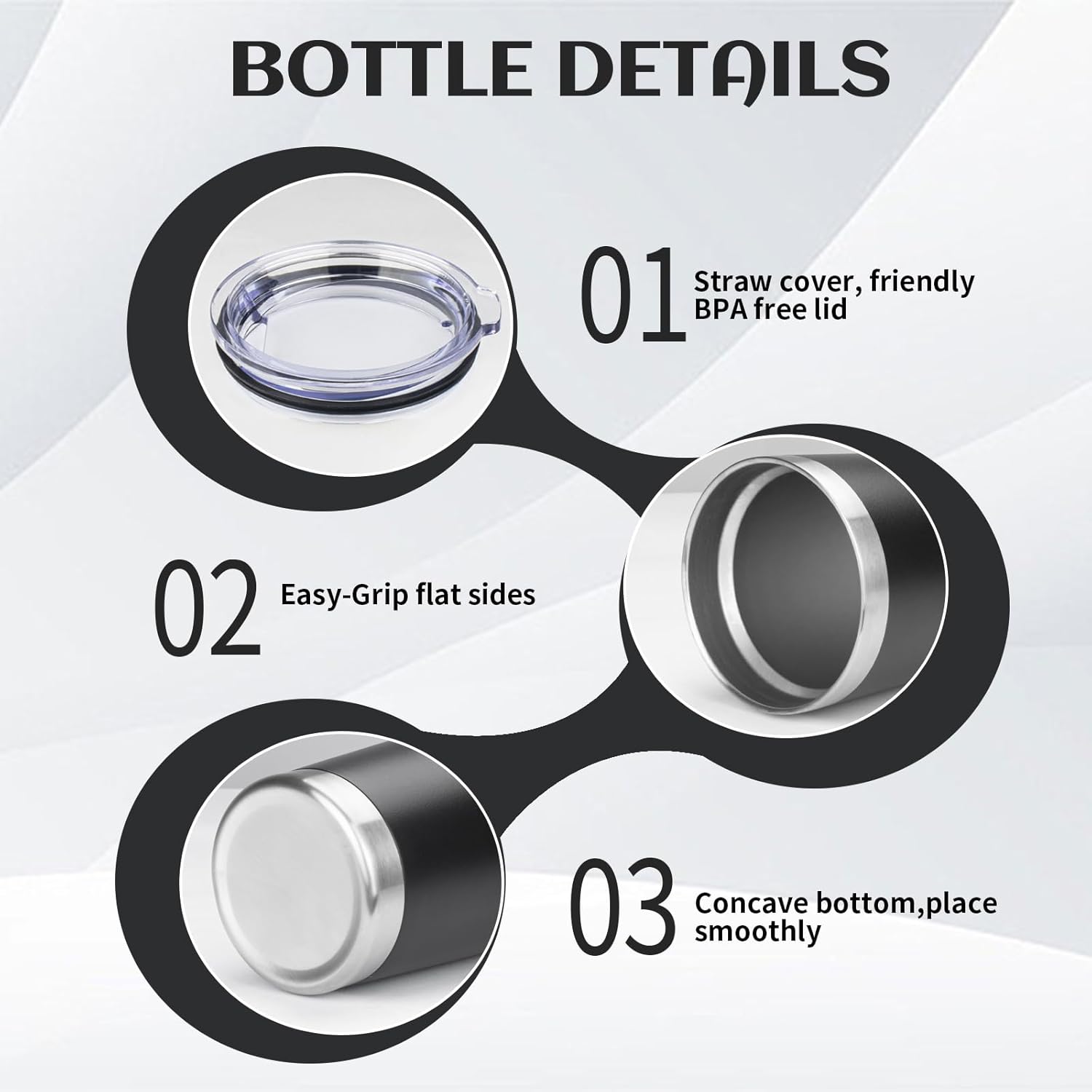 - BPA Free Lid: Stainless steel tumbler set with lid and an opening for drinking, be aware of how hot your coffee is before taking a sip. Under normal temperature, the insulated coffee cup keep your water hot for three hours and cold for nine hours