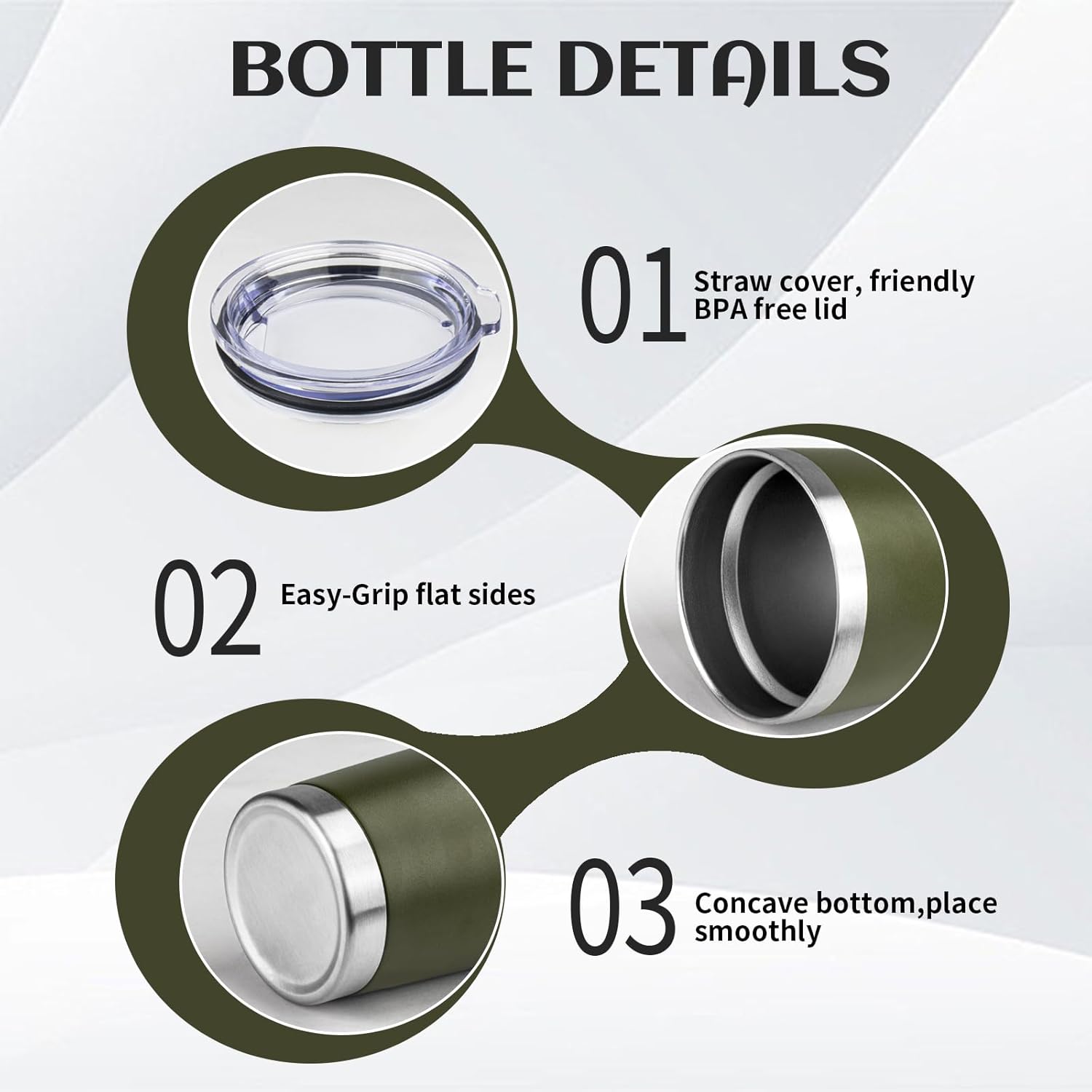 - BPA Free Lid: Stainless steel tumbler set with lid and an opening for drinking, be aware of how hot your coffee is before taking a sip. Under normal temperature, the insulated coffee cup keep your water hot for three hours and cold for nine hours