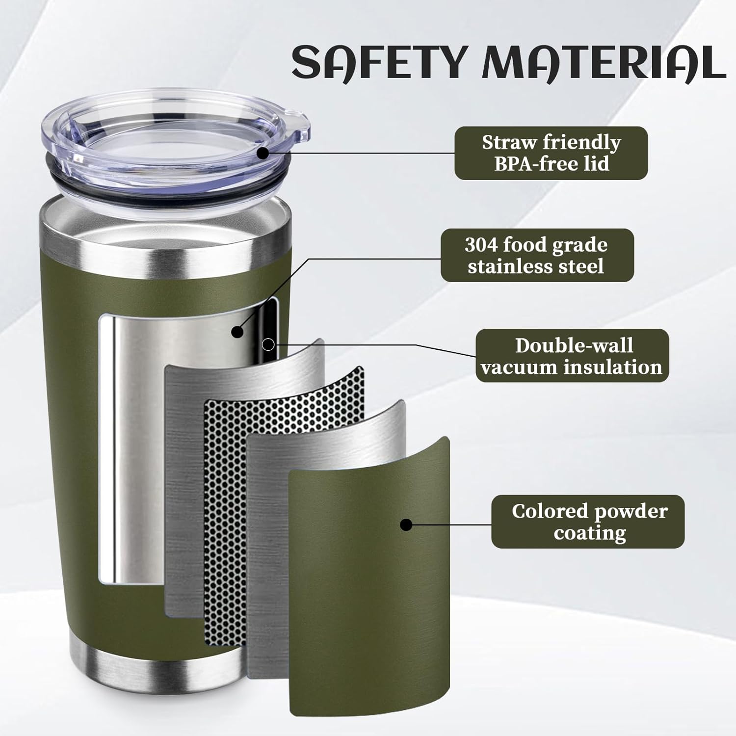 - Premium Material: 20oz Insulated tumblers are made of 304 food grade stainless steel with powder coating that won't fade, peel,and also provide additional grip to the exterior. Do not recommend washing in the dishwasher