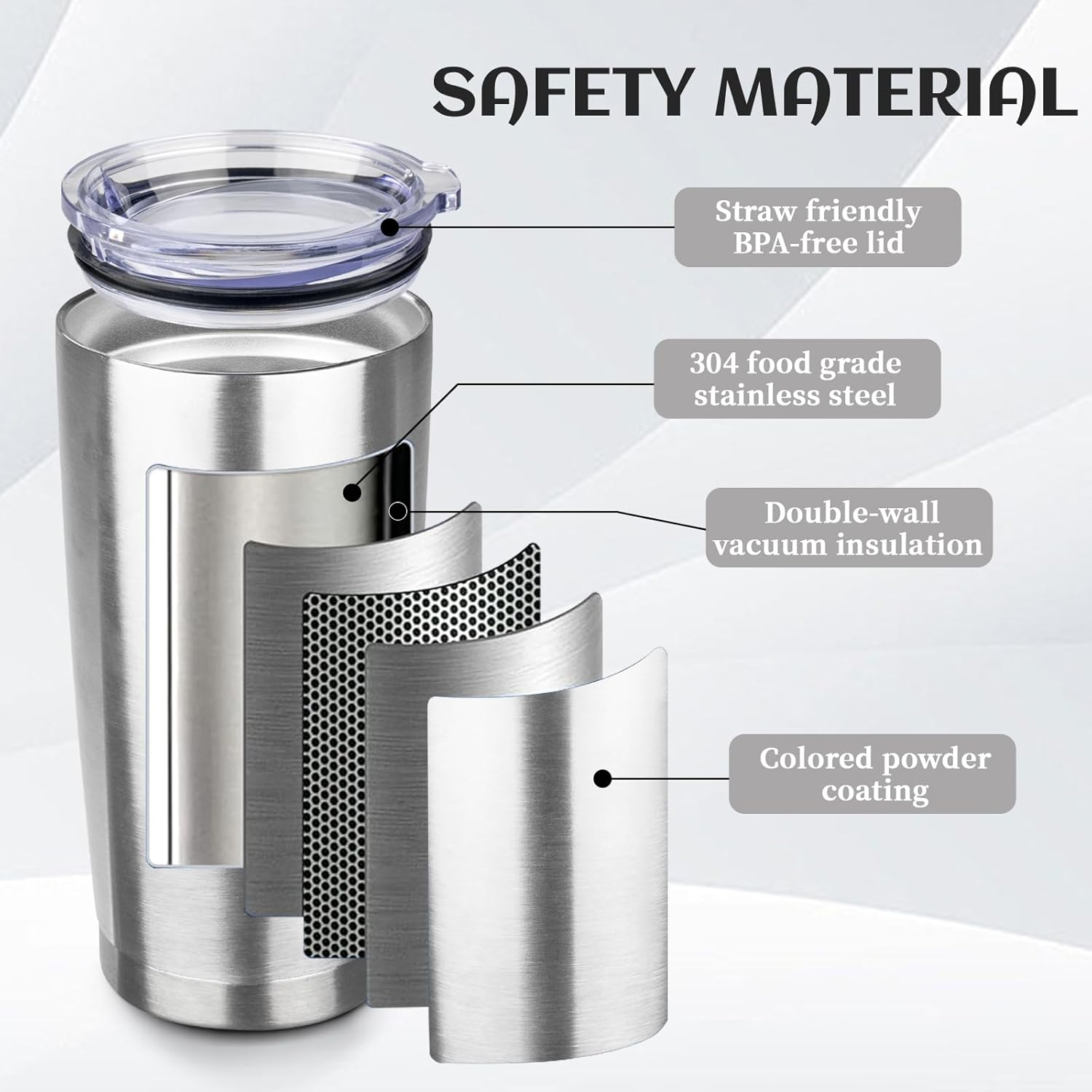 - BPA Free Lid: Stainless steel tumbler set with lid and an opening for drinking, be aware of how hot your coffee is before taking a sip. Under normal temperature, the insulated coffee cup keep your water hot for three hours and cold for nine hours