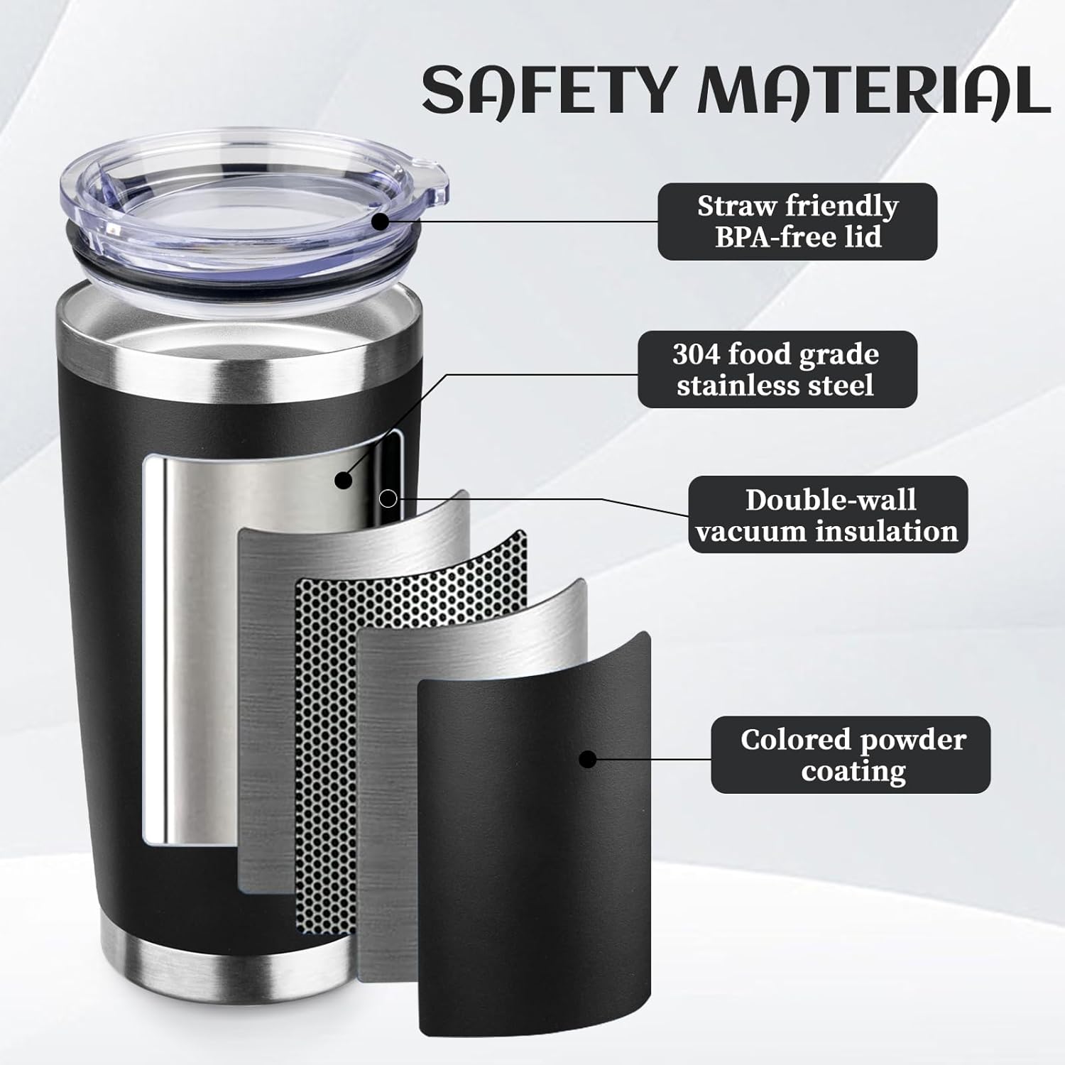 - BPA Free Lid: Stainless steel tumbler set with lid and an opening for drinking, be aware of how hot your coffee is before taking a sip. Under normal temperature, the insulated coffee cup keep your water hot for three hours and cold for nine hours