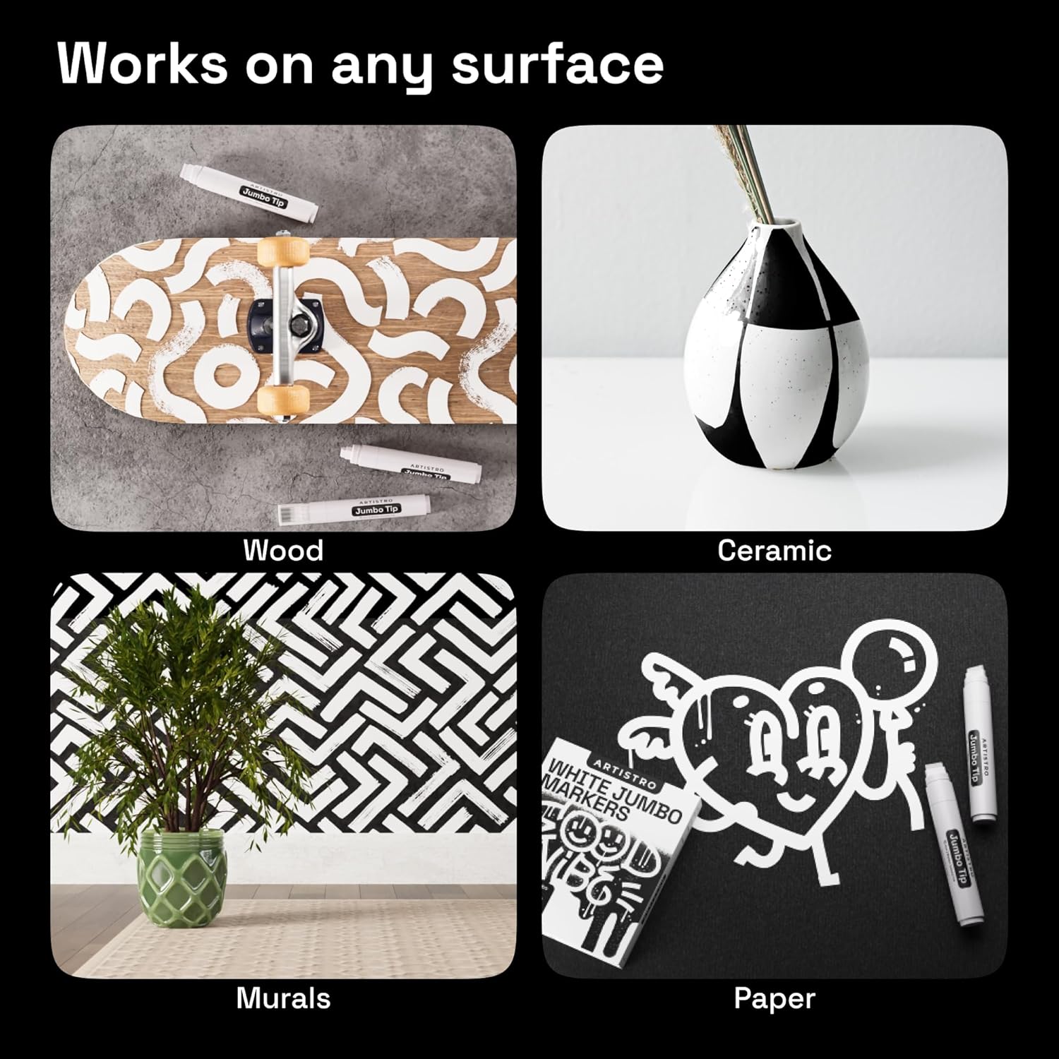 ARTISTRO 5 White Jumbo Markers Acrylic Markers with 15mm Jumbo Felt Tip for Murals Tagging Posters Art Journals & Calligraphy