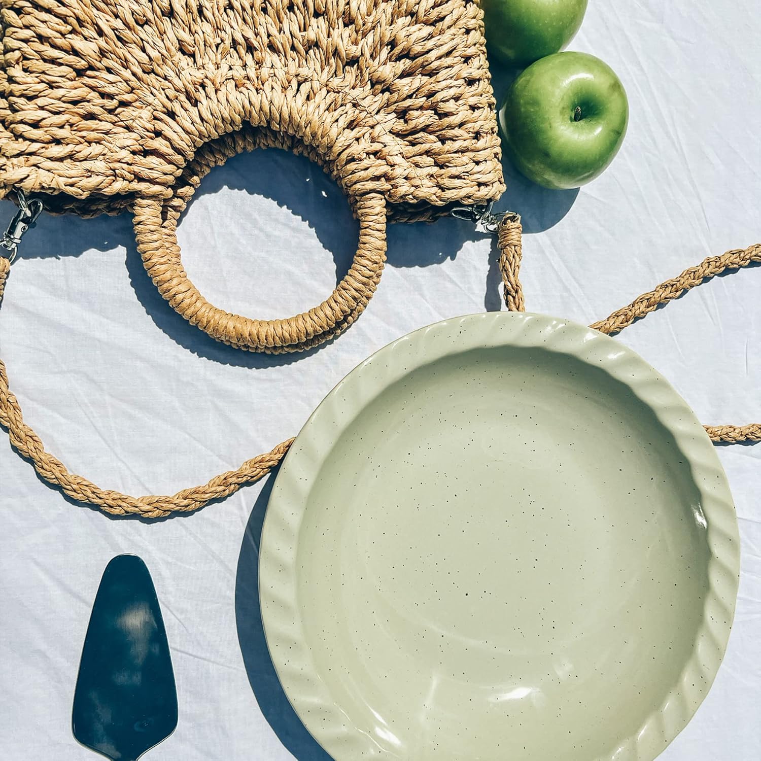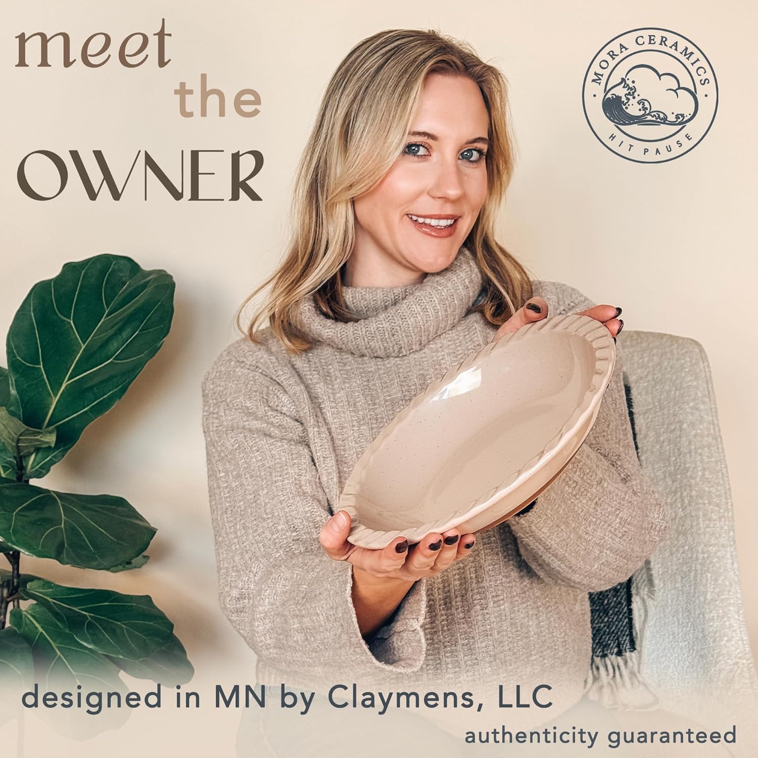 Mora Ceramics Classic 9 Inch Round Pie Pans Set of 2 - Dishwasher and Oven Safe, Shallow Pans for Baking Apple/Pumpkin Pies, Quiche, Rolls, etc.