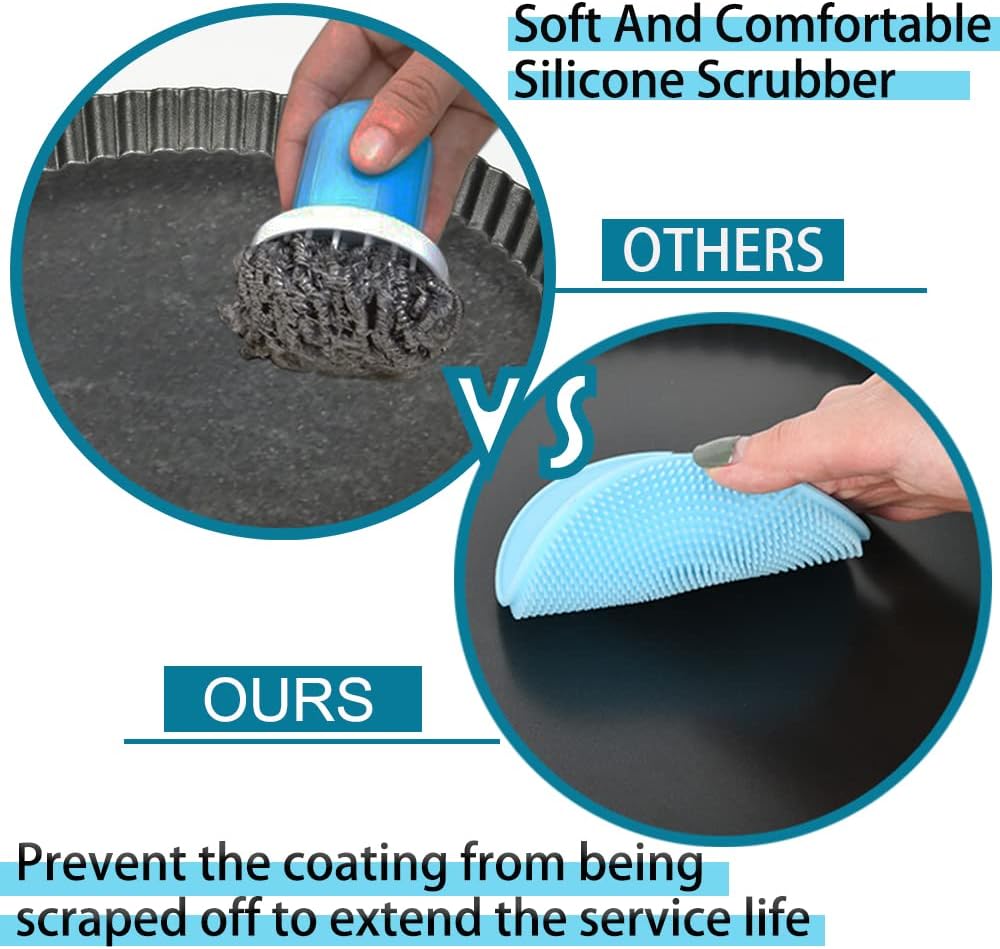 - Extra Silicone Scrubber for Easier Cleaning: To extend the service life of the loose bottom tart tin , please do not use sharp metal to clean . Therefore , we prepare an extra silicone scubber for you . It is recommended to clean up the residue with the silicone scrubber after use , then hand wash with warm soapy water , and dry completely before storage .