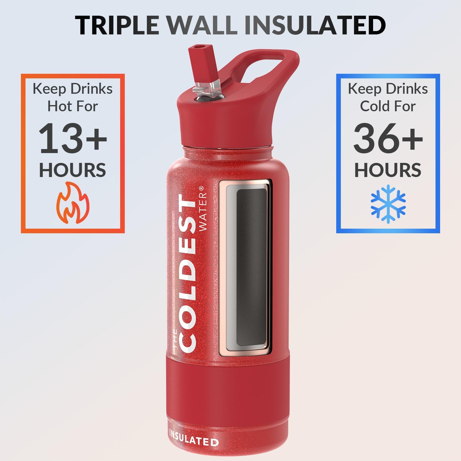 - ππππππππ ππππππππππ ππππππππππ: Coldest reusable water bottles are your solution to tepid sips. With the world's first fully insulated straw lid, this bottle keeps your drink cold for 36+ hours and hot for 13+ hours, ensuring your drink stays at the perfect temperature throughout the day. Cold-tested against 50+ leading brands, its superior performance guarantees an unmatched experience. Upgrade now to the Coldest Water Bottle and bid farewell to temperature woes.