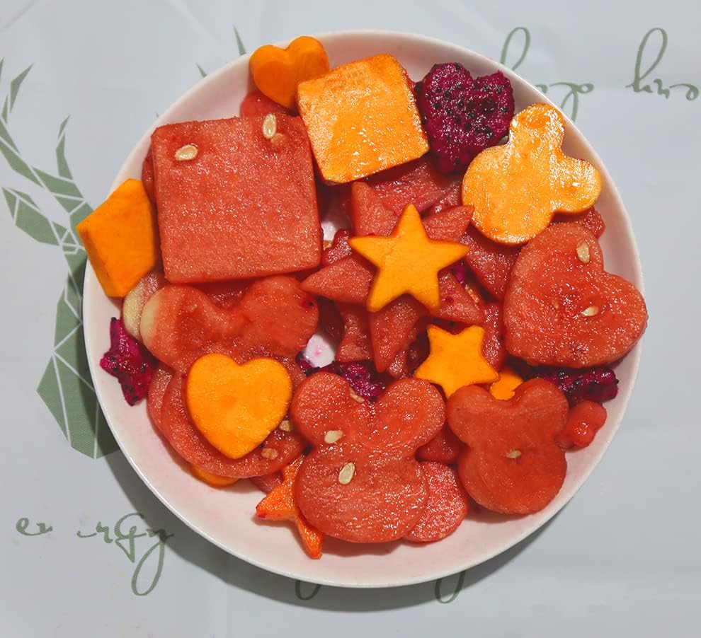 - COOKIE CUTTERS FOR KIDS:Heart cookie cutter, square cookie cutter, star cookie cutter - The cute cookie cutters shapes can make food of various shapes and sizes, creating interesting and varied fruit and vegetable ideas in a relaxed atmosphere, which not only cultivates children's hands-on ability, but also improves children's appetite.