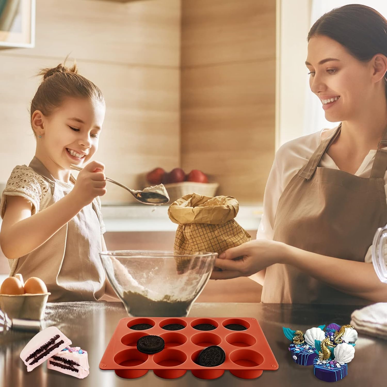 Round Chocolate Cookie Molds, 2PCS SAKOLLA Cylinder Silicone Mold for Chocolate Covered Oreos, Cake, Candy, Pudding, Mini Soap