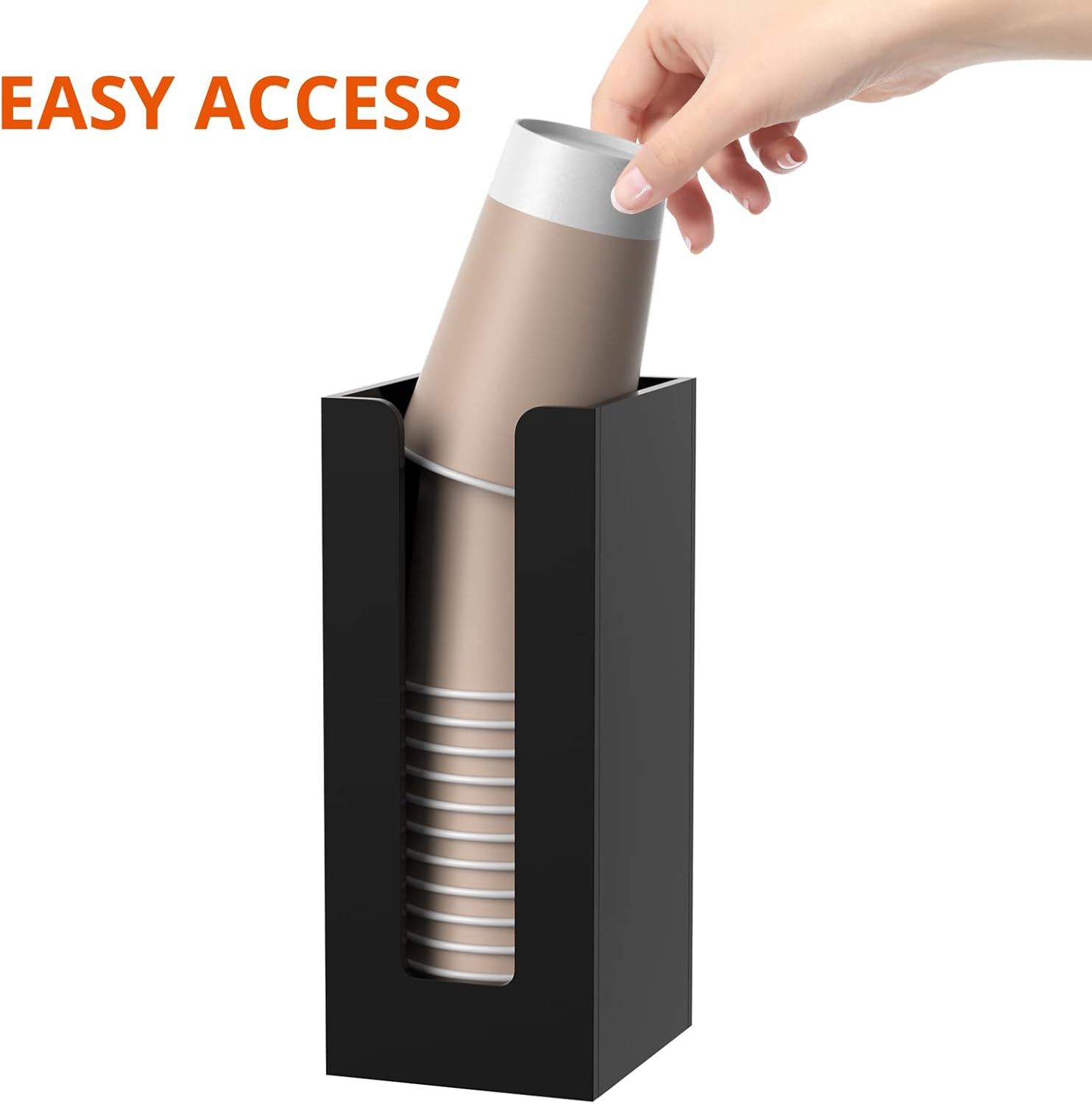 - Easy Access - the cup and lid organizer dispenses disposable cups and lids, a space saver, won't take much space of your countertop, making it look neater and more organized.