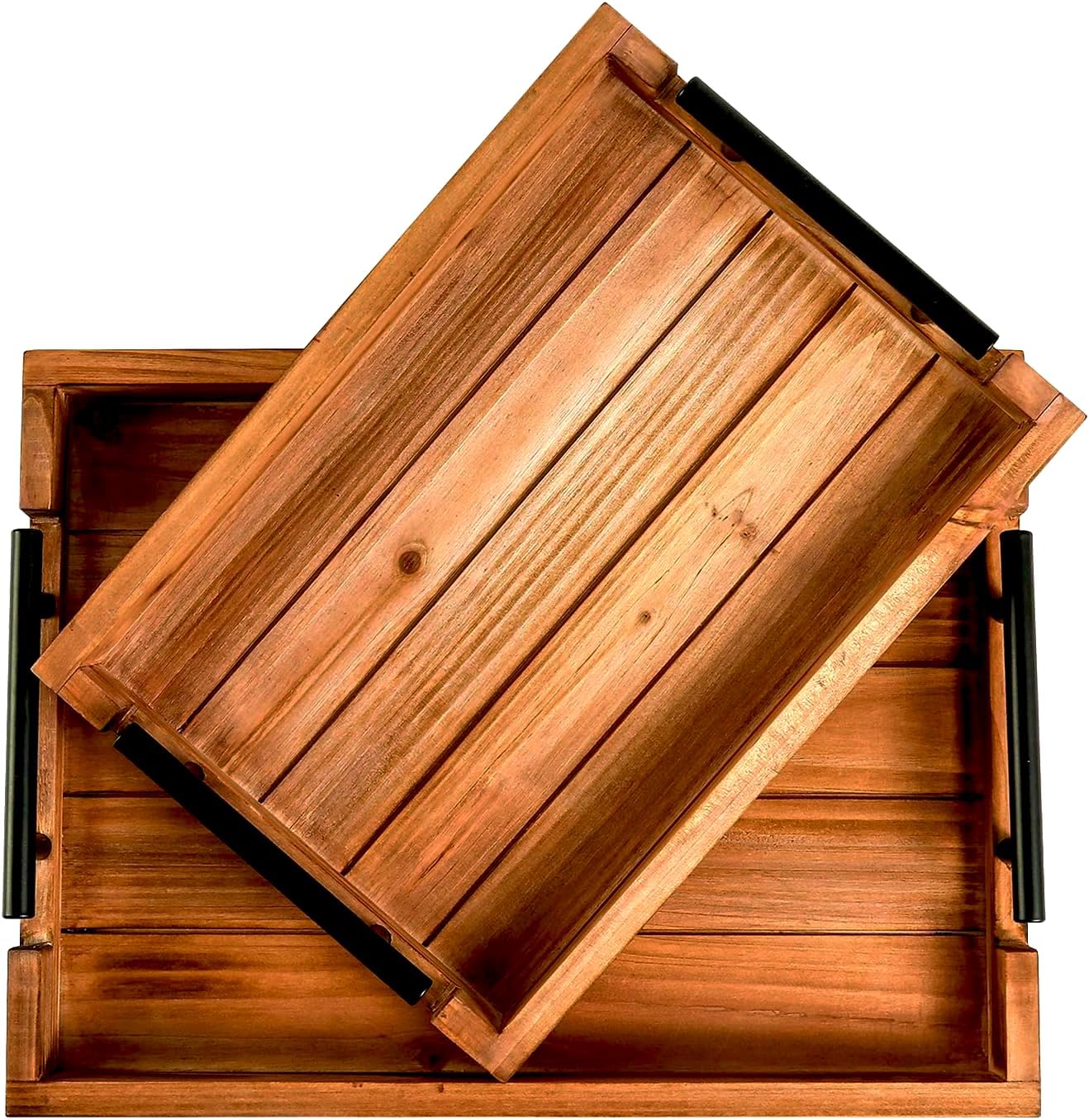 Coffee Table Tray Decorative Nested Vintage Wood Serving Tray Set for Eating, Breakfast, Party, Kitchen, Ottoman,Tea Coffee Table Large Ottoman Trays (Wood, 2pc)