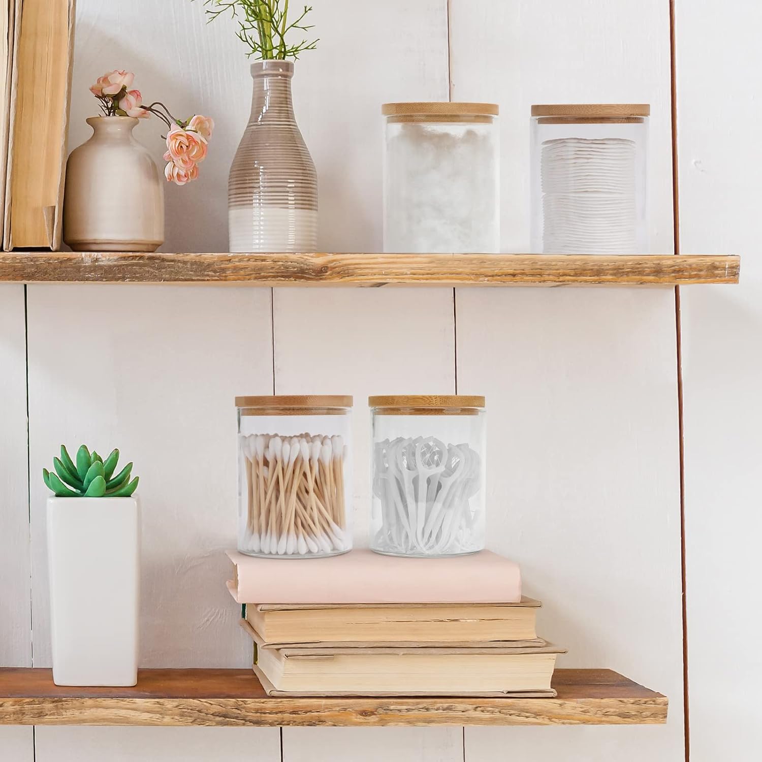 - Versatile Bathroom Accessories: Each jar in this bathroom accessory set is ideal for organizing cotton balls, cotton swabs, and other bathroom essentials. Their practical design ensures easy access and promotes neat organization, making them perfect for your bathroom decor and storage needs.