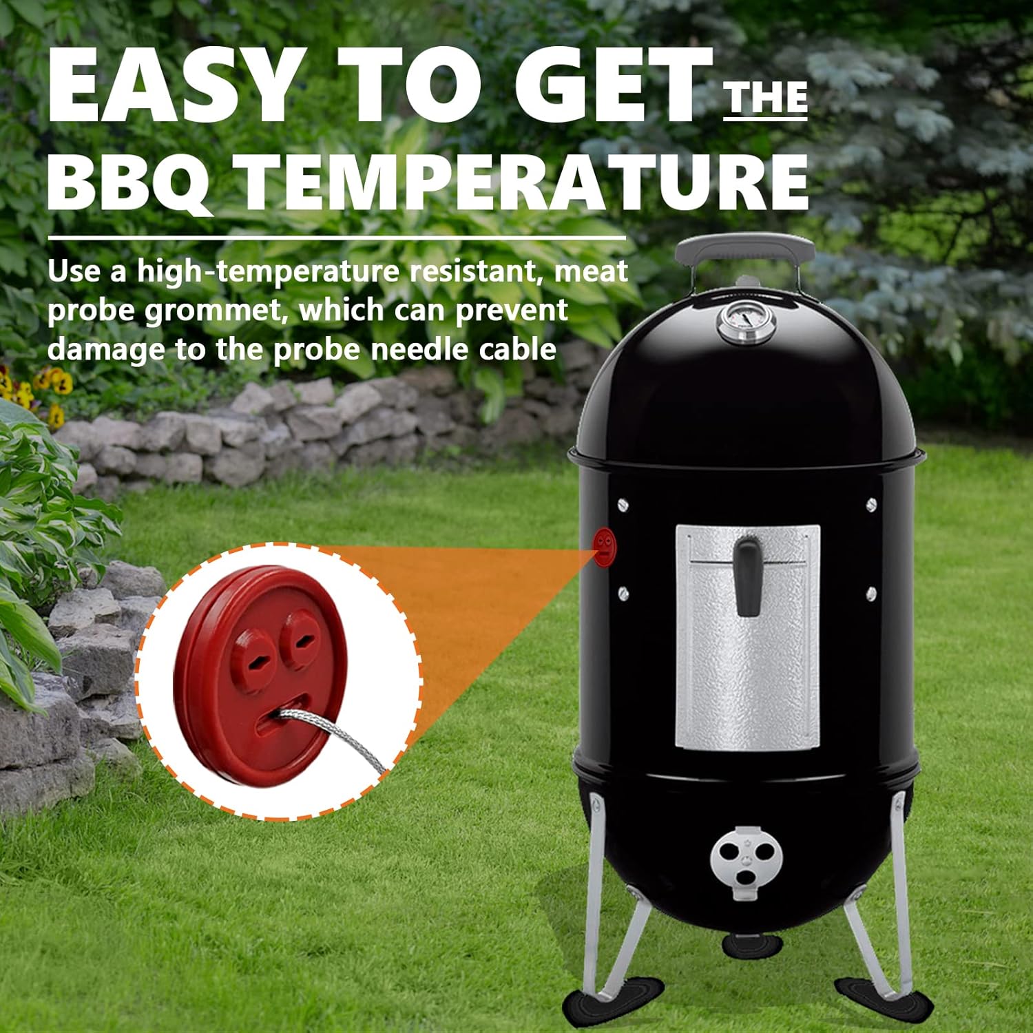 - REPLACE PROBE GROMMET: Compatible with Weber Smokey Mountain Cookers (14", 18"& 22"). Size: Overall diameter 1.65", Hole diameter 1.25", Thickness 0.35" (TIP: FIT FOR METAL PLATE THICKNESS 0.04")