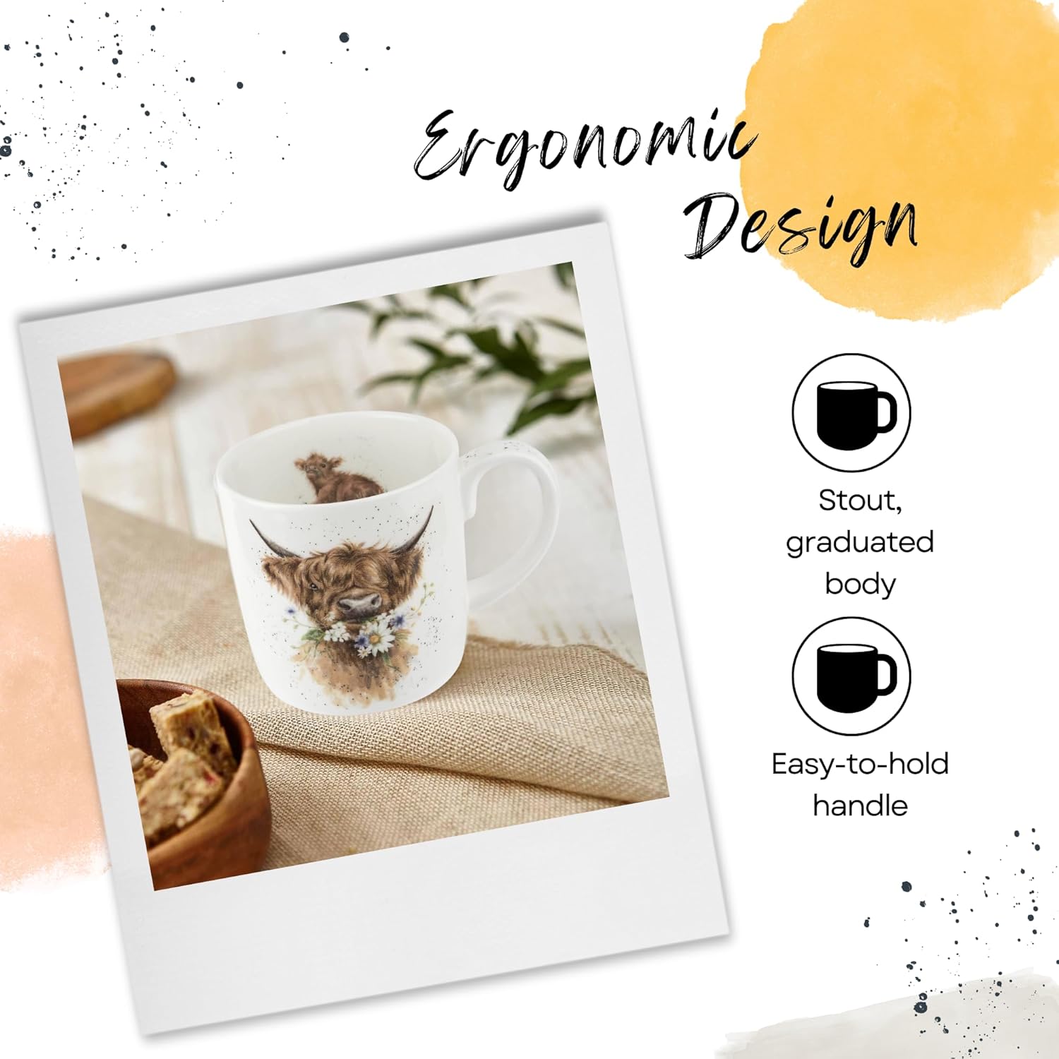 Royal Worcester Wrendale Designs 14 oz Mug, Daisy Coo - Fine Bone China with Cow Motif - Woodland Themed Tea Mug for Cozy Cottagecore Homes - Safe Ceramic Drinkware for Daily Use