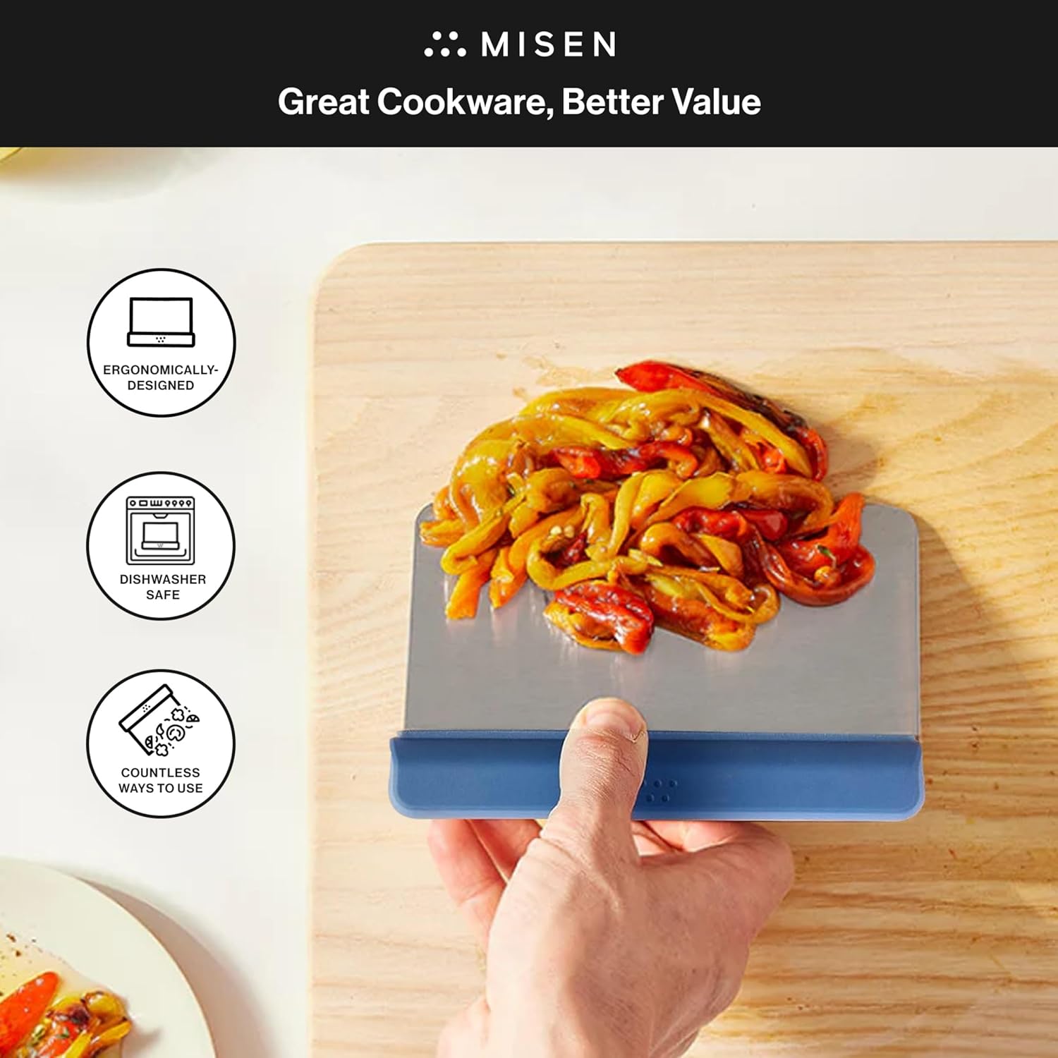 Misen Stainless Steel Bench Scraper - Versatile Food Scraper with Walnut Handle - Ideal for Kitchen, Pastry & Dough - Durable Cutting Board Scraper Tool for Effortless Transfer into Pots & Pans - Blue