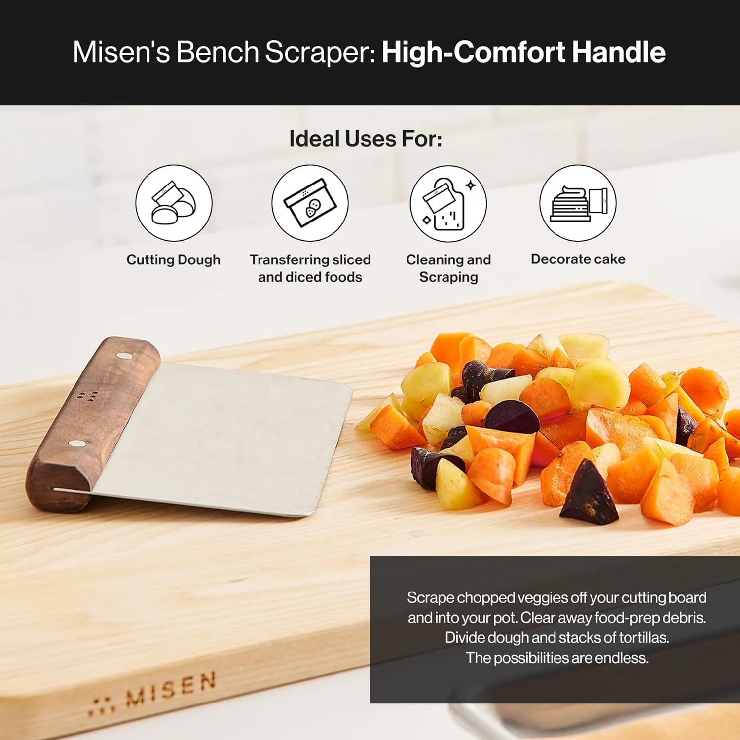 Misen Stainless Steel Bench Scraper - Versatile Food Scraper with Walnut Handle - Ideal for Kitchen, Pastry & Dough - Durable Cutting Board Scraper Tool - Effortless Transfer into Pots & Pans -Walnut