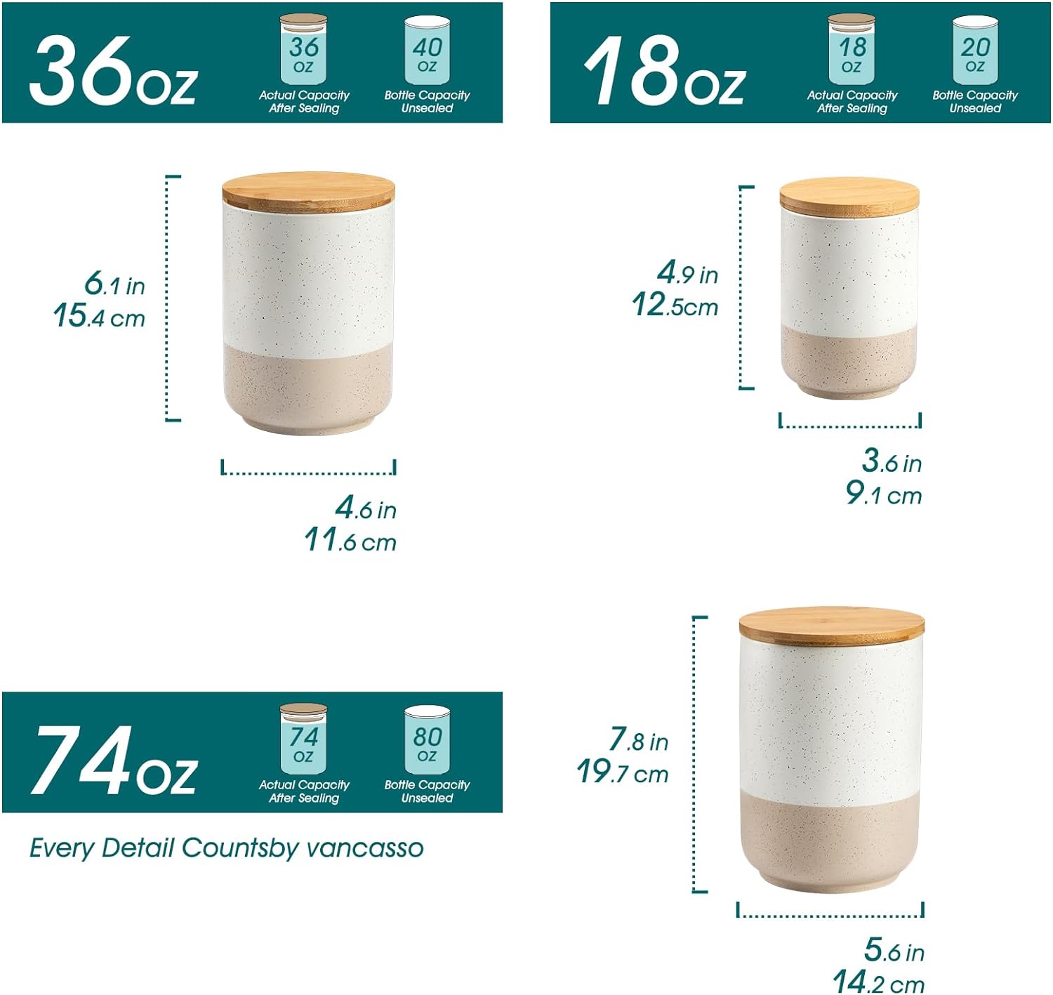 - 【Durable & Stylish Material】Made from high-quality terracotta ceramic, these canisters are more durable than plastic or glass. The smooth, glazed surface is easy to clean and dishwasher-safe (wooden lids are hand wash only)