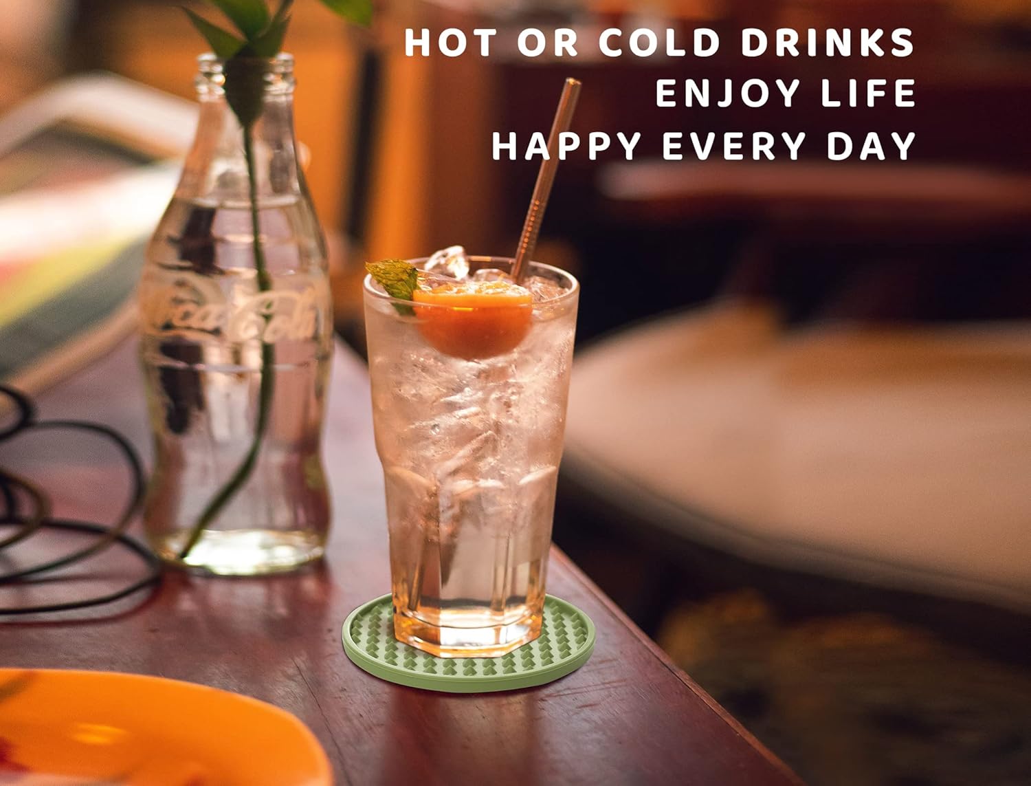 - ※Easy Clean and Storage:Silicone coasters are dishwasher safe or be rinsed in water.Can be used for cold or hot beverages for any occasion.These tabletop coasters stack perfectly in a holder and you will enjoy your tidy table.