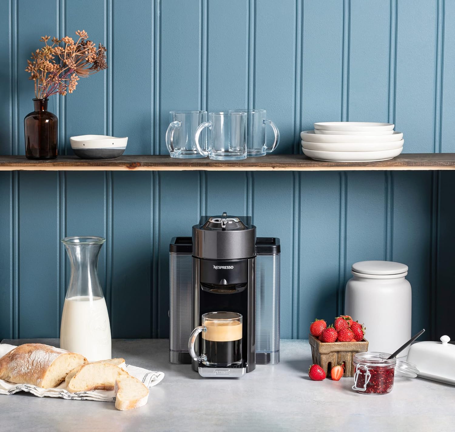 - GLASS IN STYLE: Choosing the right coffee mug or tea cup set for your home can be tuff as styles change so frequently. Rest assured these classic timeless glassware nespresso mugs with handles stylish clear glass mugs designed in the USA to keep your kitchen in style for years to come.