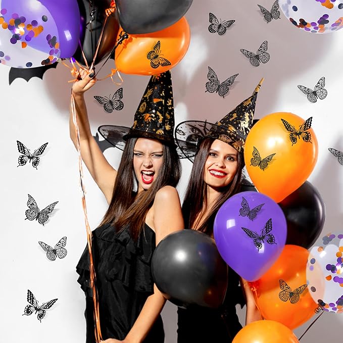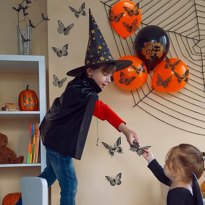SAOROPEB 3D Butterfly Wall Decor 48 Pcs 4 Styles 3 Sizes, Gold Butterfly Decorations for Butterfly Birthday Decorations Butterfly Party Decorations Cake Decorations, Removable Stickers (Black)