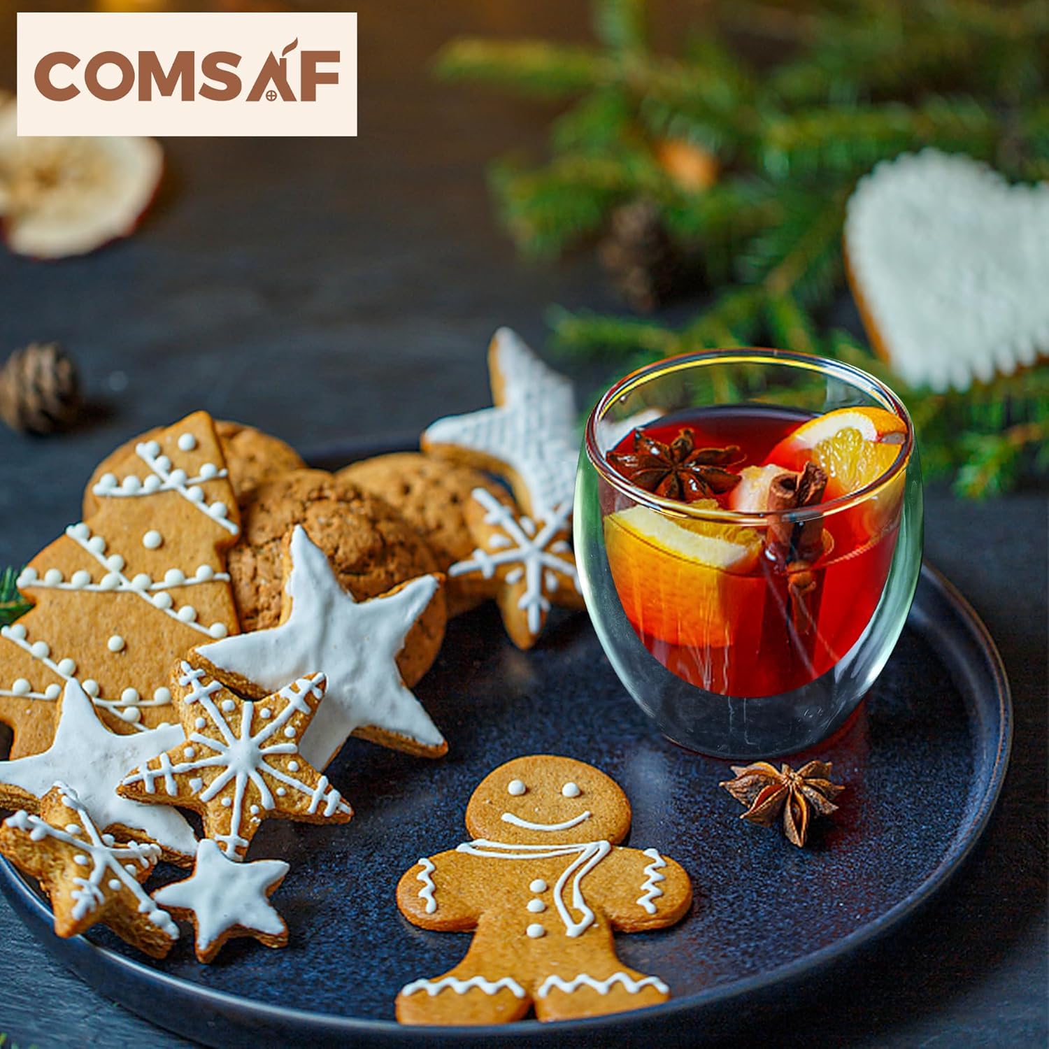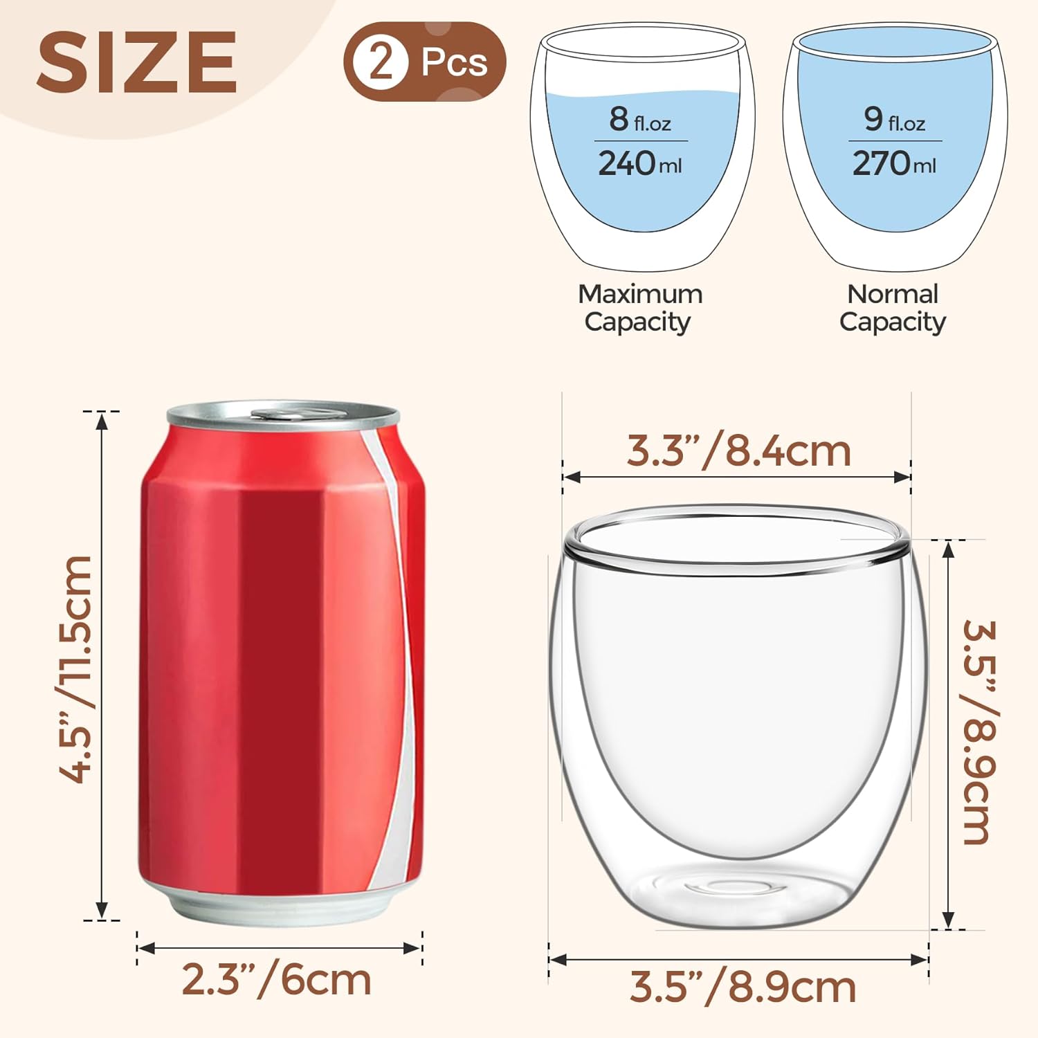 ComSaf Cappuccino Cup 8 oz, Glass Coffee Cups Set of 2, Double Walled Glass Coffee Mugs for Caramel Macchiato, Latte, Flat White, Lungo, Coffee Mug Set Gift for Christmas, Birthday
