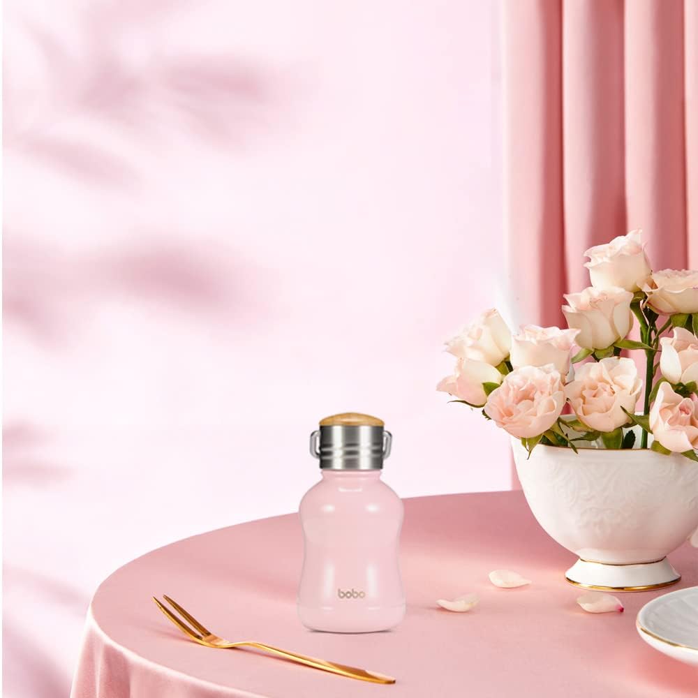 YOHKOH Mini Vacuum Insulated Water Bottle With Bamboo Lid - Stainless Steel Thermos Water Bottle for Women Girls Kids, Metal Sports Hot and Cold Water Bottle Leak-Proof BPA-Free (6.4oz,Pink)