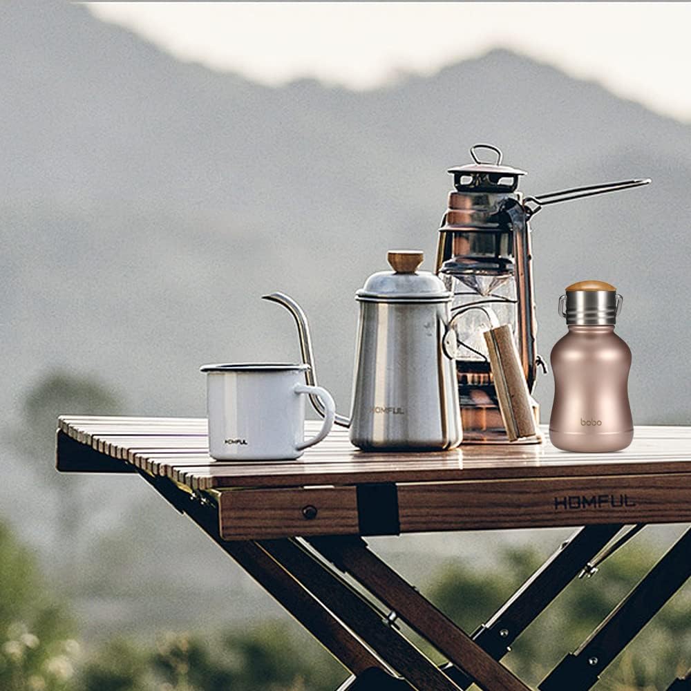 YOHKOH Mini Vacuum Insulated Water Bottle With Bamboo Lid - Stainless Steel Thermos Water Bottle for Women Girls Kids, Metal Sports Hot and Cold Water Bottle Leak-Proof BPA-Free (6.4oz,Gold)