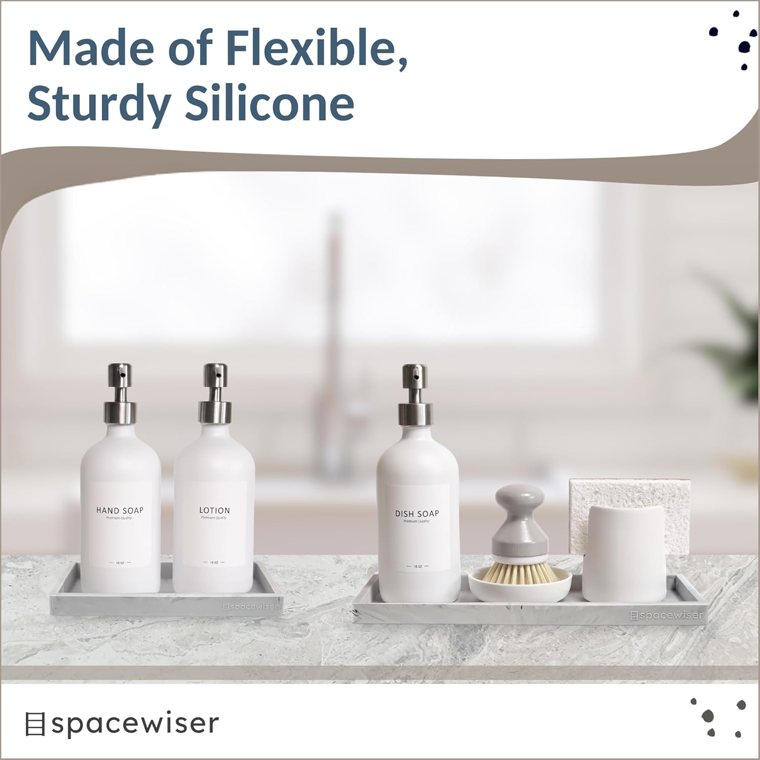 Countertop and Vanity Tray - 2 PC (11” and 7”) Shatterproof Silicone Kitchen and Bathroom Trays for Counter, Kitchen Soap Dispenser Tray, Vanity Trays for Bathroom, Perfume Key Tray