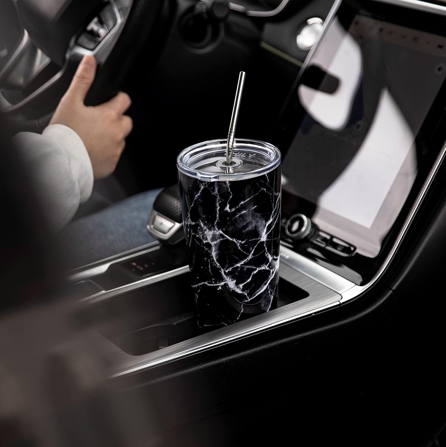 THILY Stainless Steel Vacuum Insulated Tumbler 26 oz Triple-Insulated Travel Mug with Splash-Proof Lid, for Iced Coffee and Hot Beverage, White Marble + Black Marble